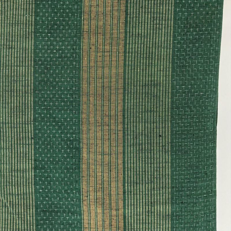 【色柄】深緑色 カジュアル 織り 変わり縞