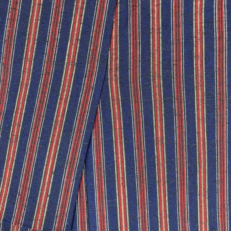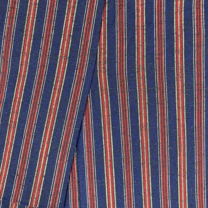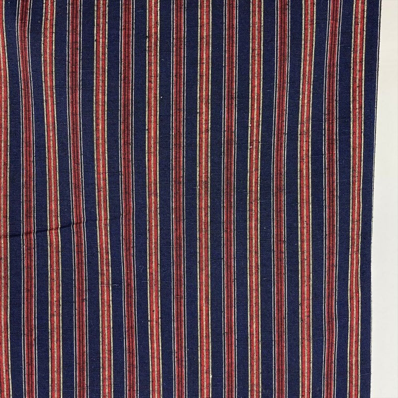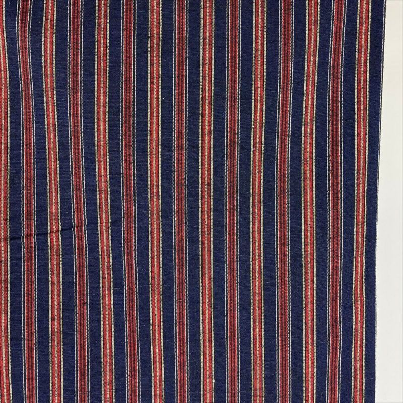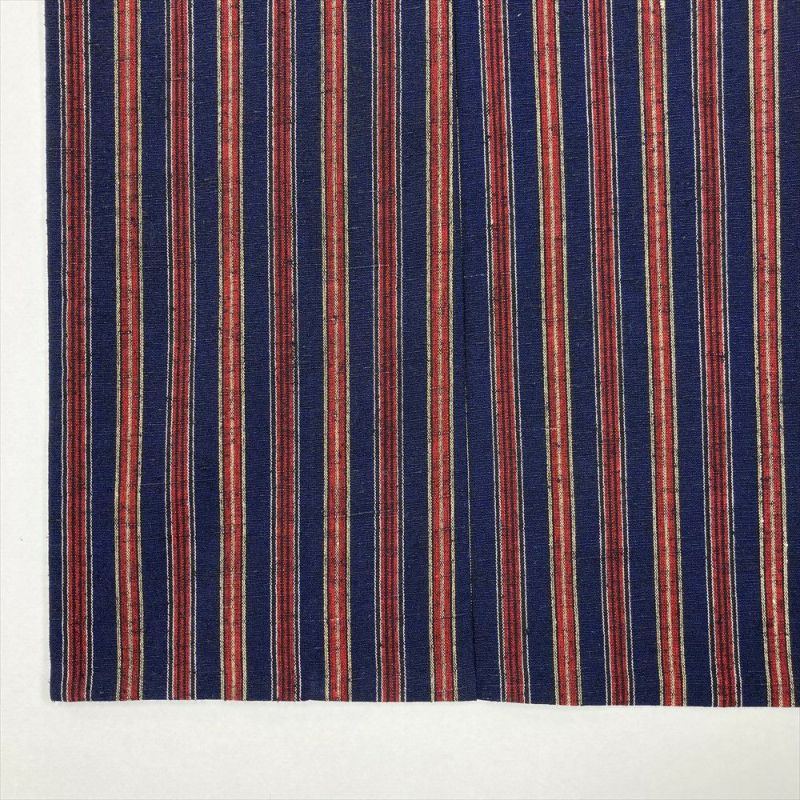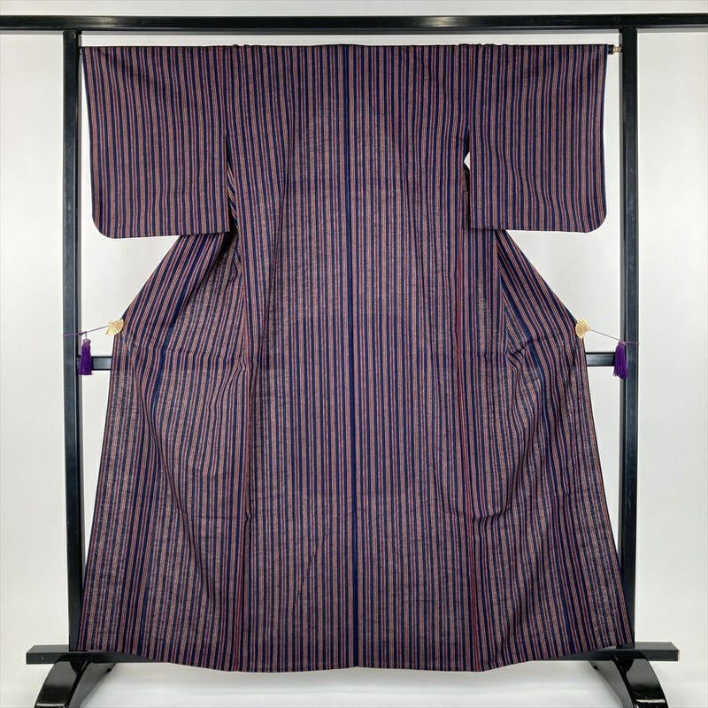 (中古) 単衣紬 紺色 カジュアル 織り 縞 ひとえ S【身丈】155.5cm【裄丈】67cm