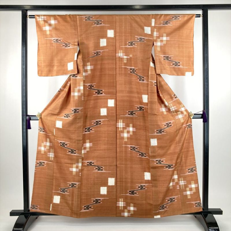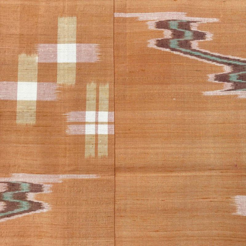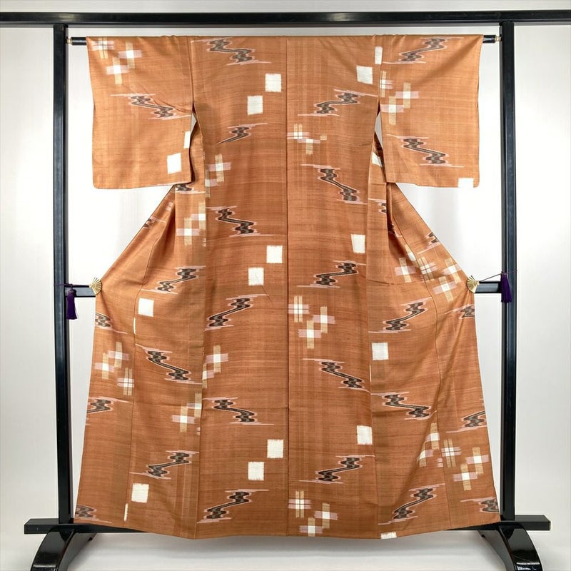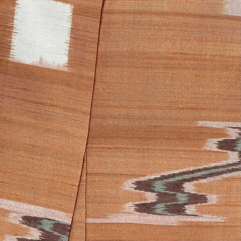 【色柄】オレンジ 薄柿色 カジュアル 織り 流水 十字絣