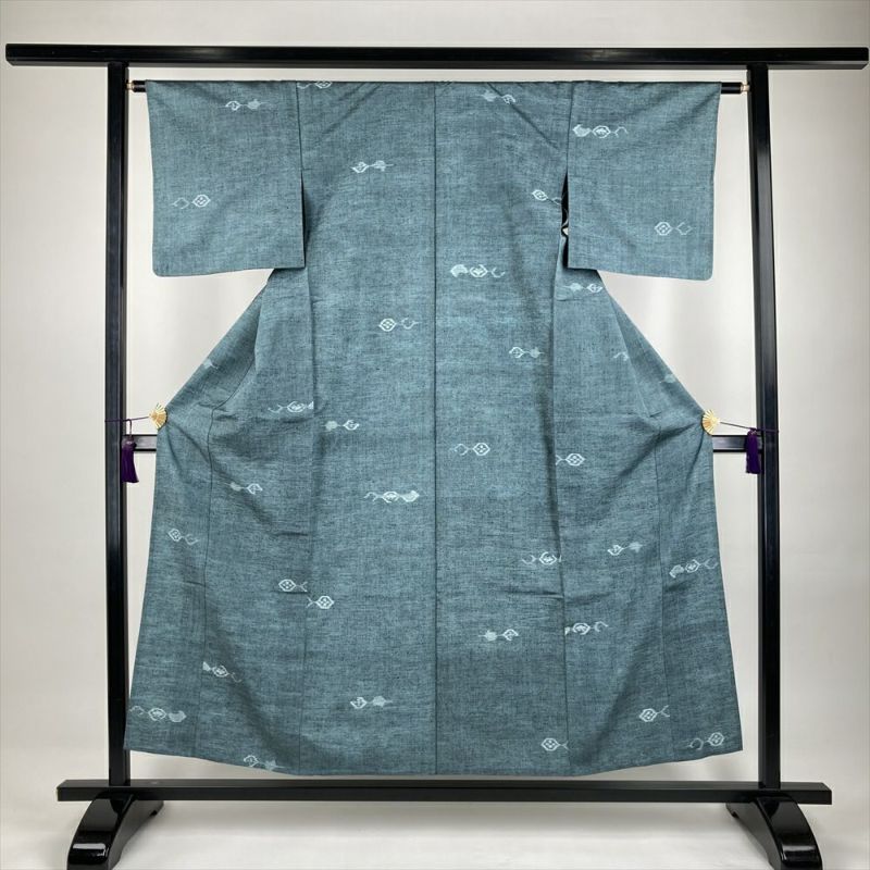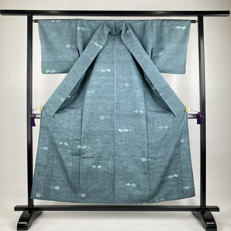 (中古)単衣紬 薄藍 カジュアル 織り 幾何学 ひとえ SS【身丈】150cm【裄丈】63cm