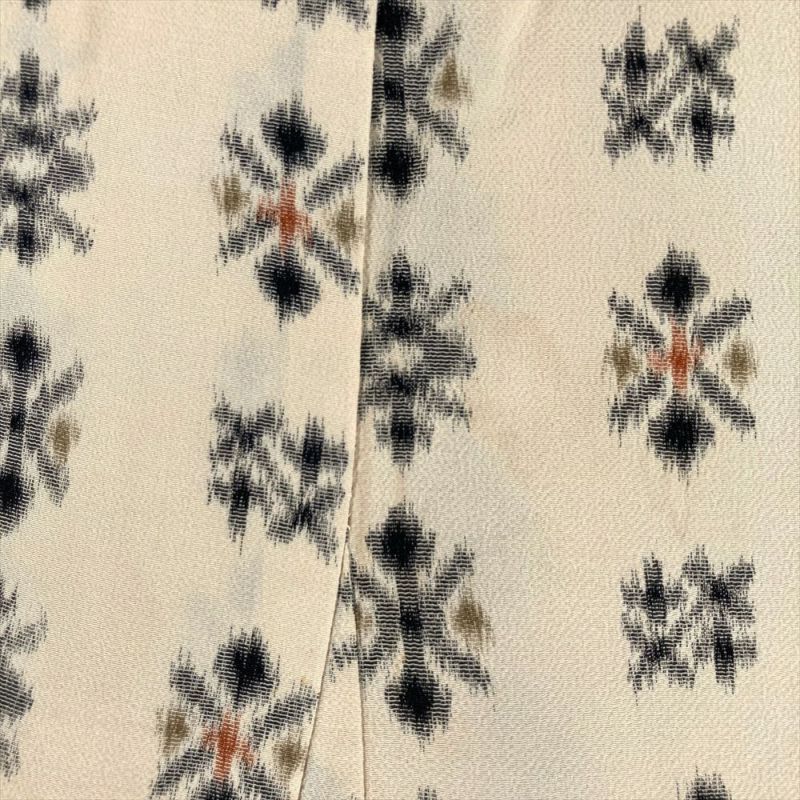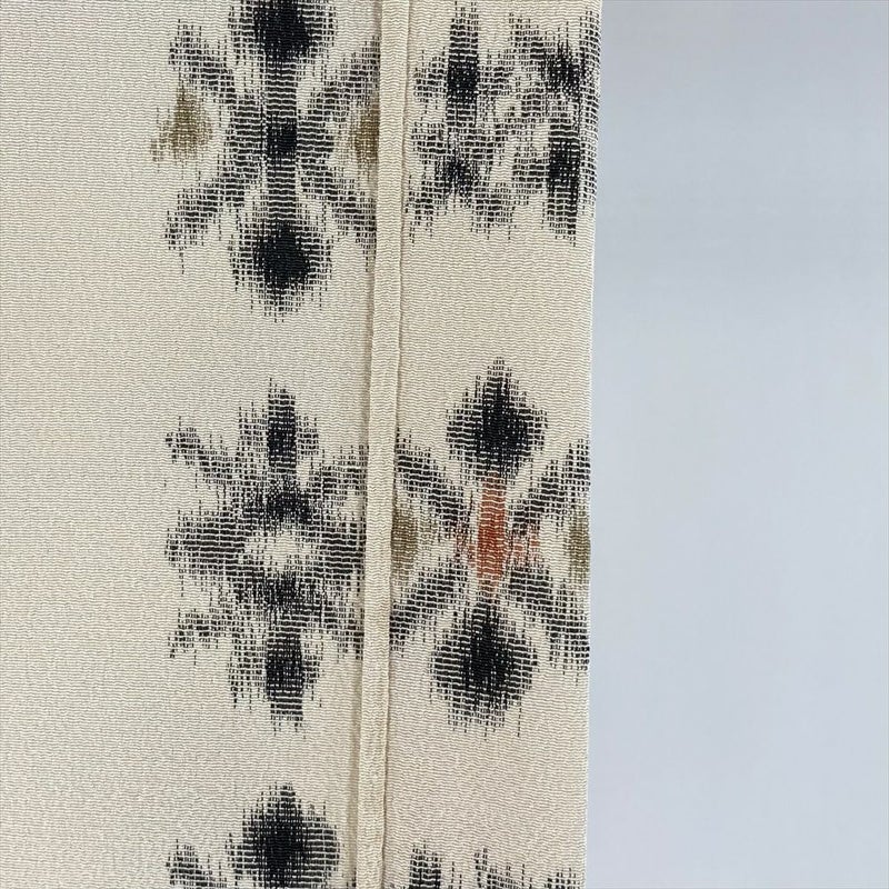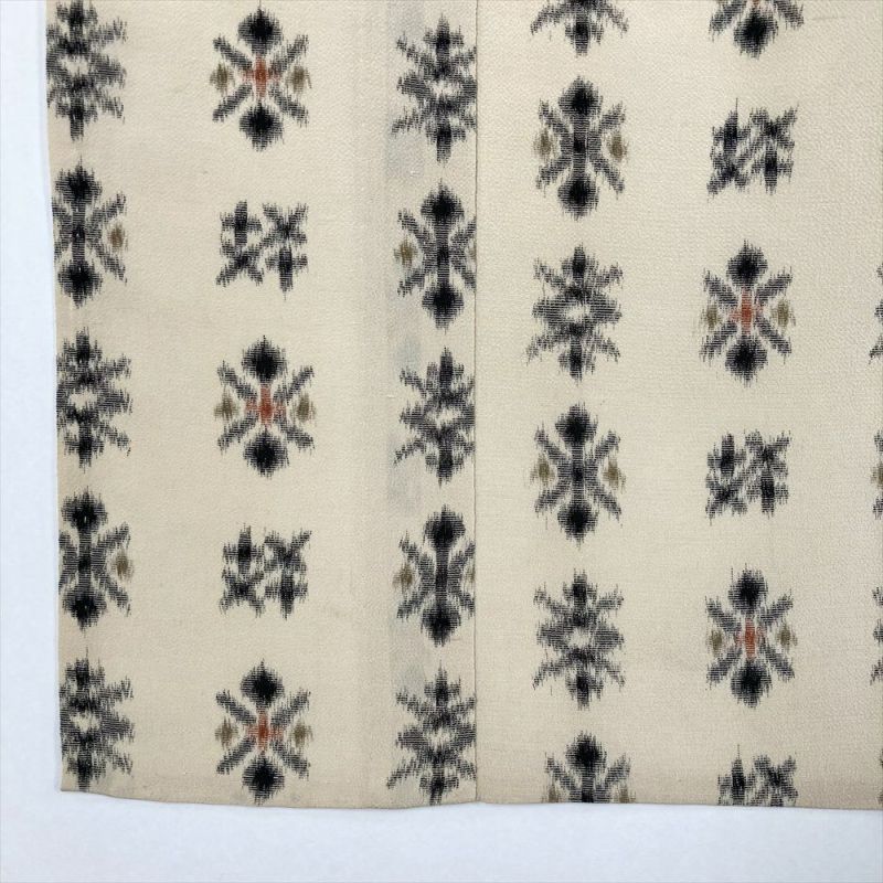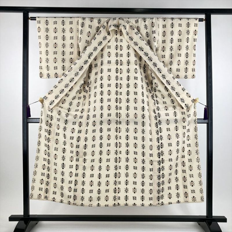 (中古) 単衣紬 生成り色 カジュアル 織り シボ 幾何学柄 ひとえ SS【身丈】144cm【裄丈】62.5cm