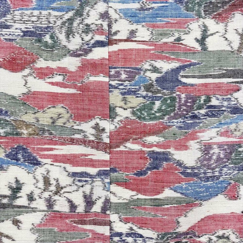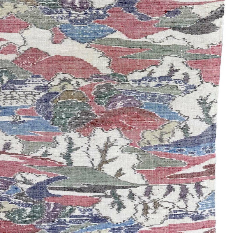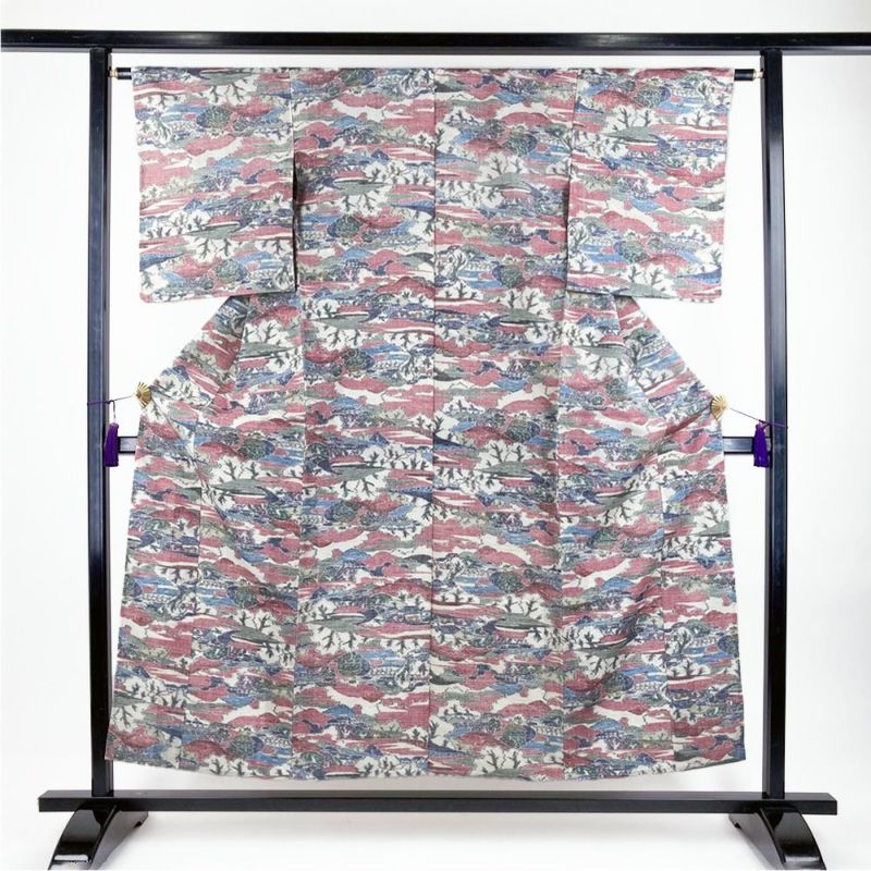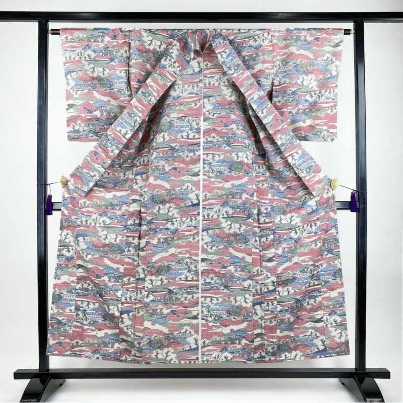 (中古)単衣紬 マルチカラー カジュアル 織り 景色 ひとえ SS【身丈】151cm【裄丈】63cm