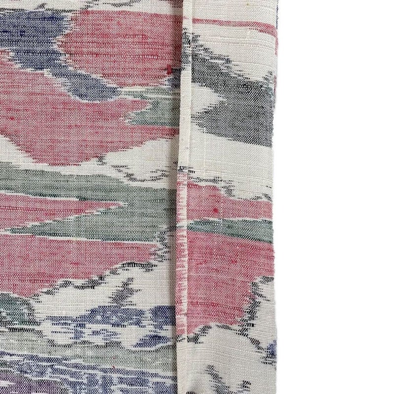 従来の決まりでいうと6月と9月、季節の変わり目に着る着物が単衣(ひとえ) 次にやってくる袷(あわせ)の前に軽やかに着られ、小物の合わせ方次第で季節を繊細に表現できます。透け感のある生地ではなく表布は袷と同じですが、裏地が付いておらず一枚で仕立ててあるのが特徴です。保存臭がややございます。
