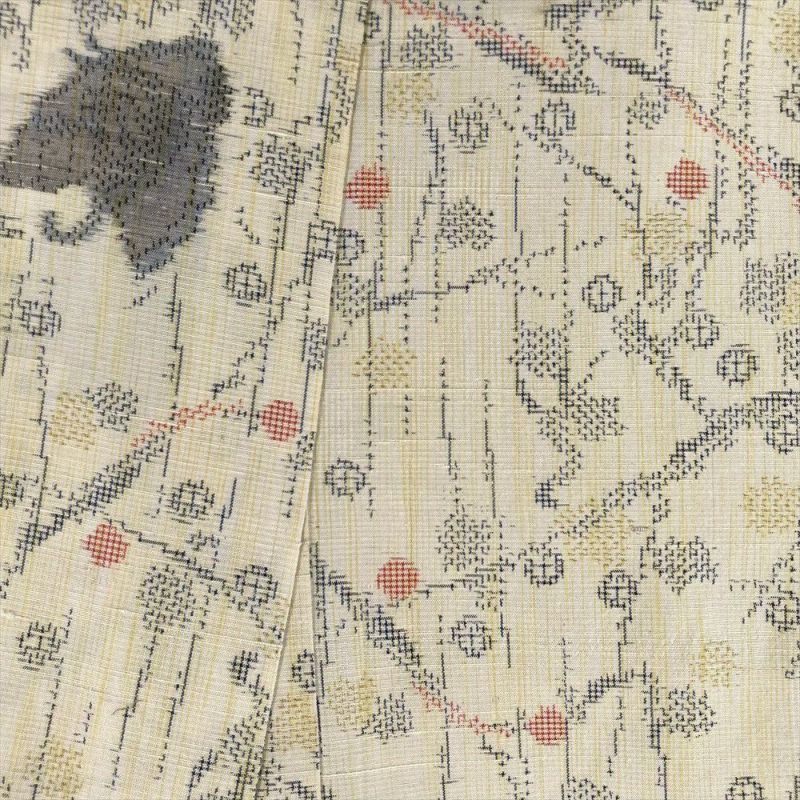 【色柄】生成り色 カジュアル 織り 蝶 花木