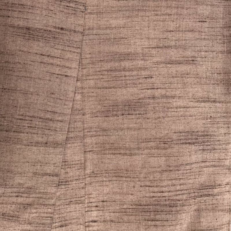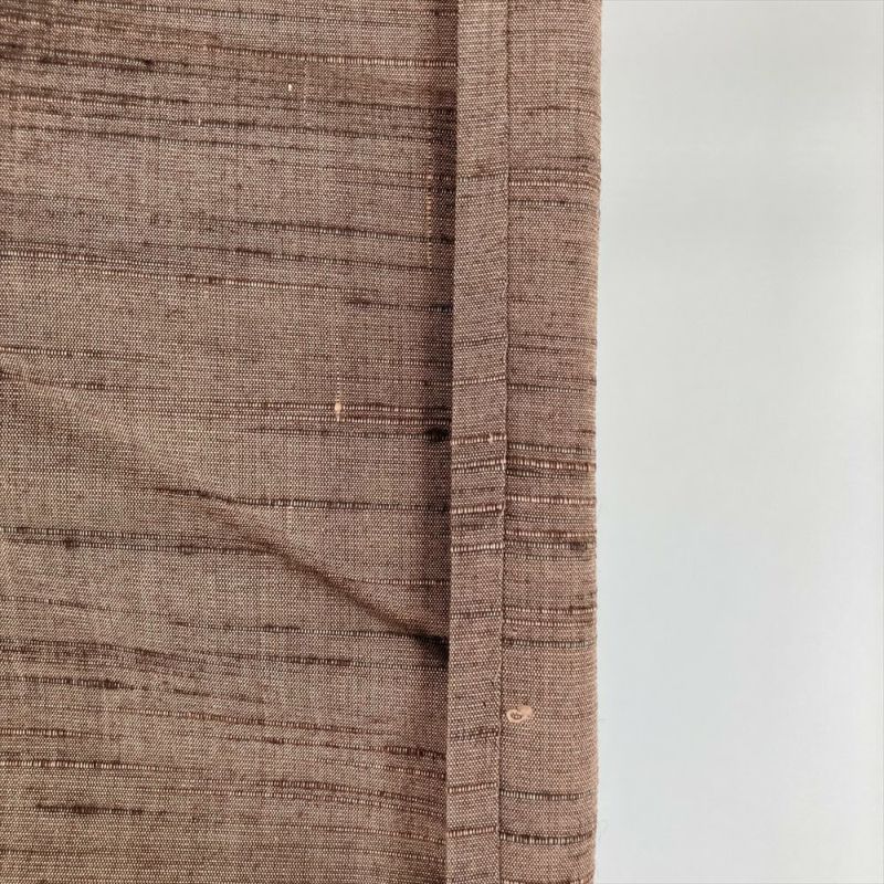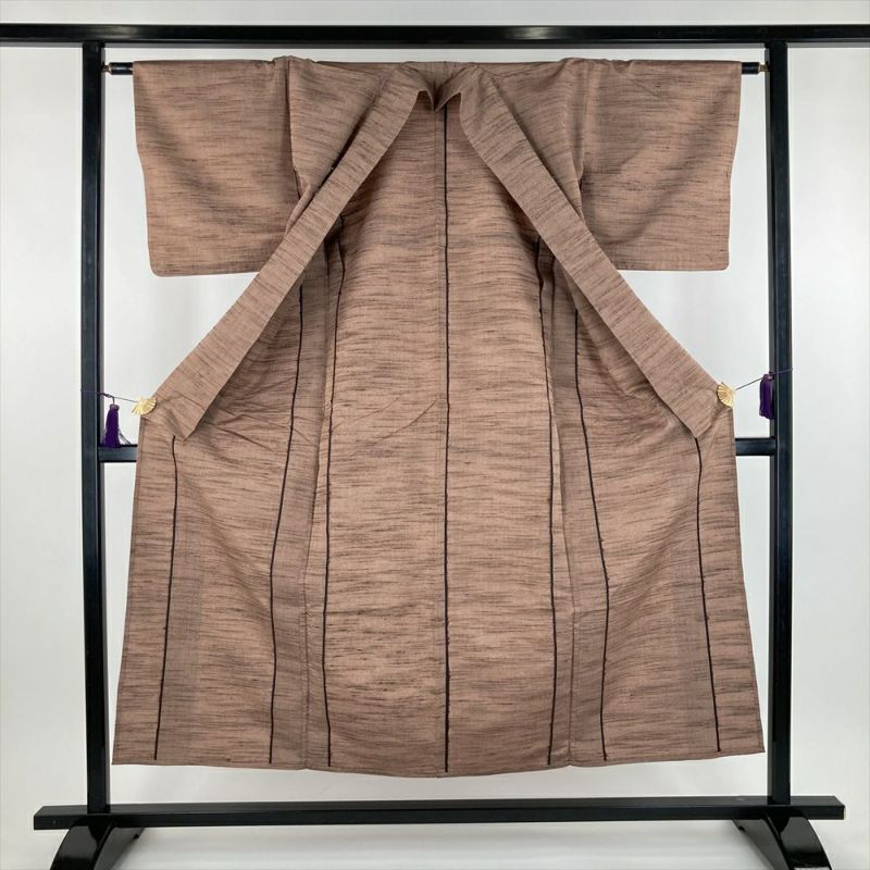 (中古) 単衣紬 茶 紅白橡色 カジュアル 織り 途切れ横段 ひとえ SS【身丈】148cm【裄丈】63cm