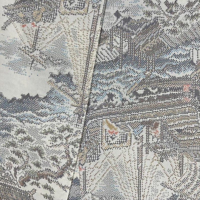 【色柄】生成り色 カジュアル 織り 港 舟