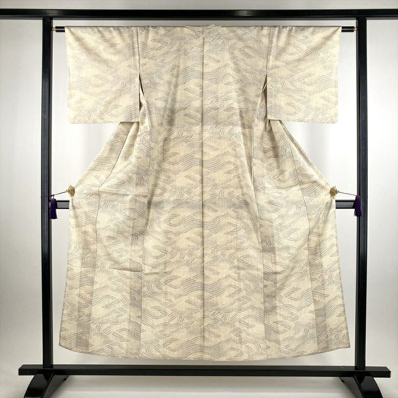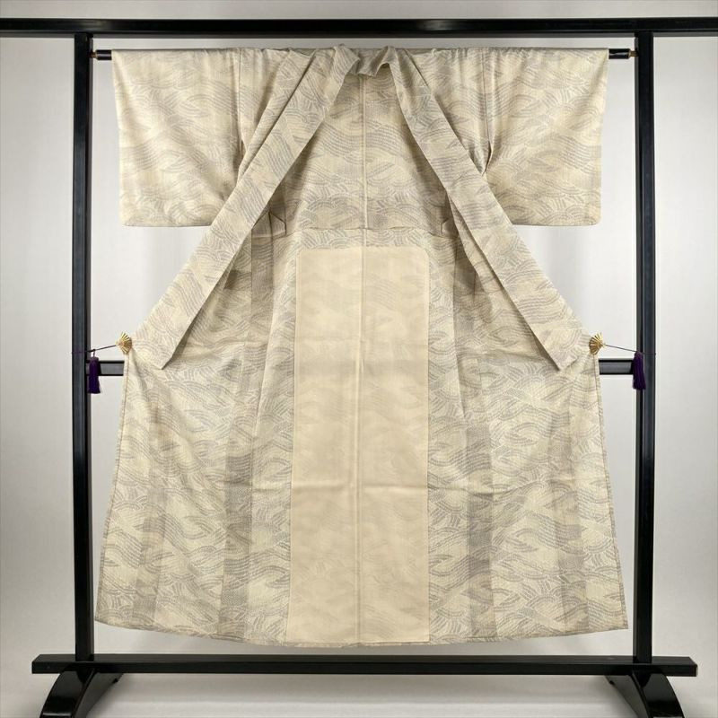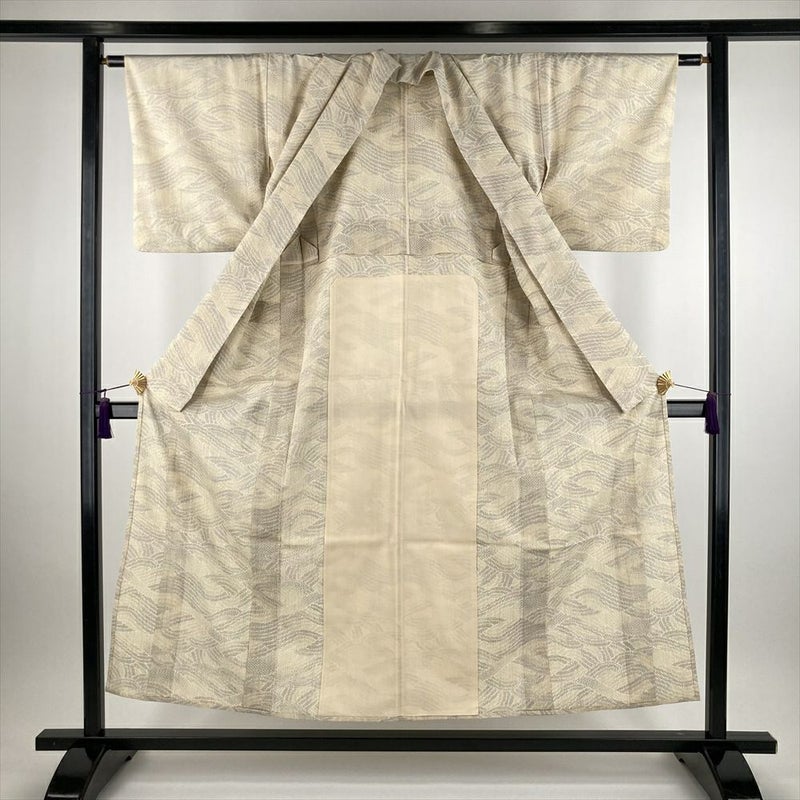 (中古) 単衣紬 生成り色 カジュアル 織り シボ 波 ひとえ SS【身丈】146cm【裄丈】63cm