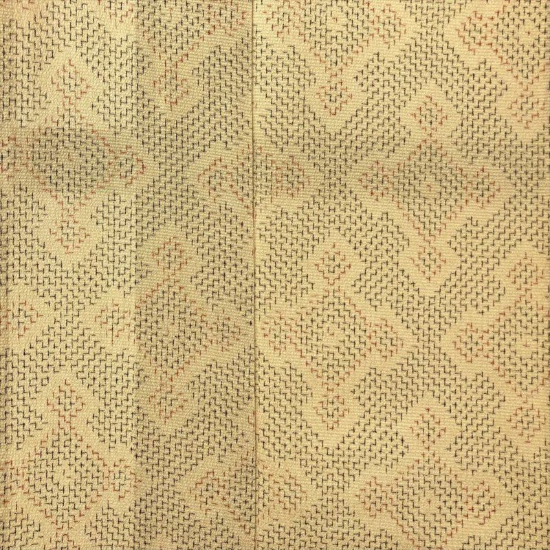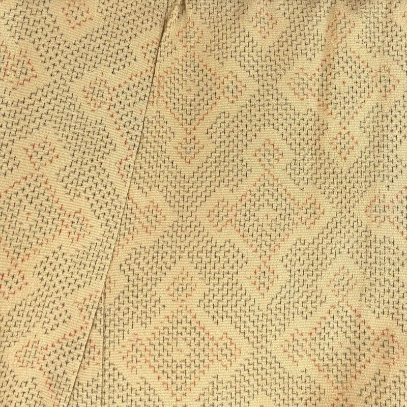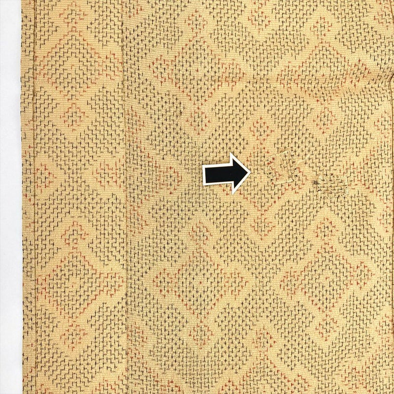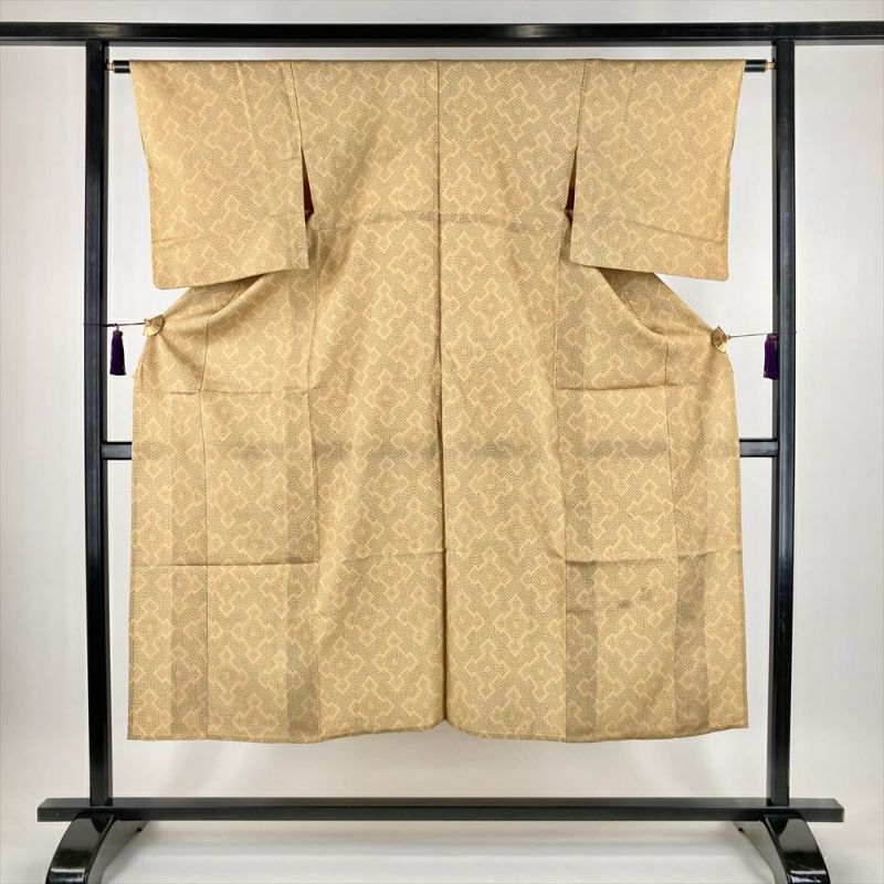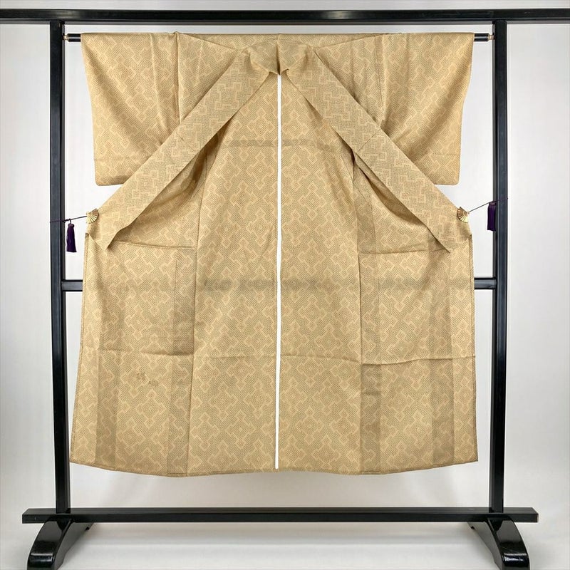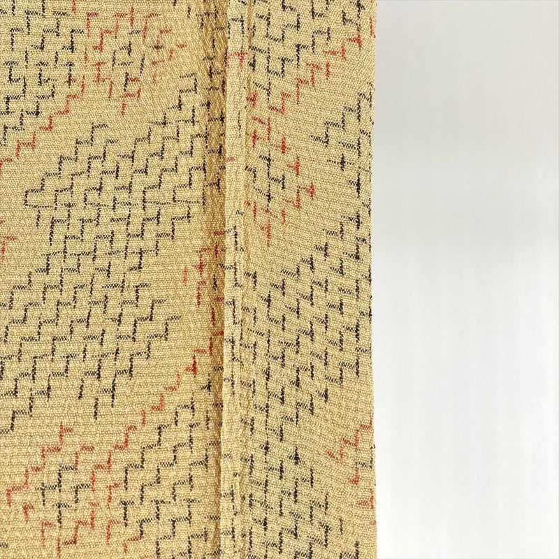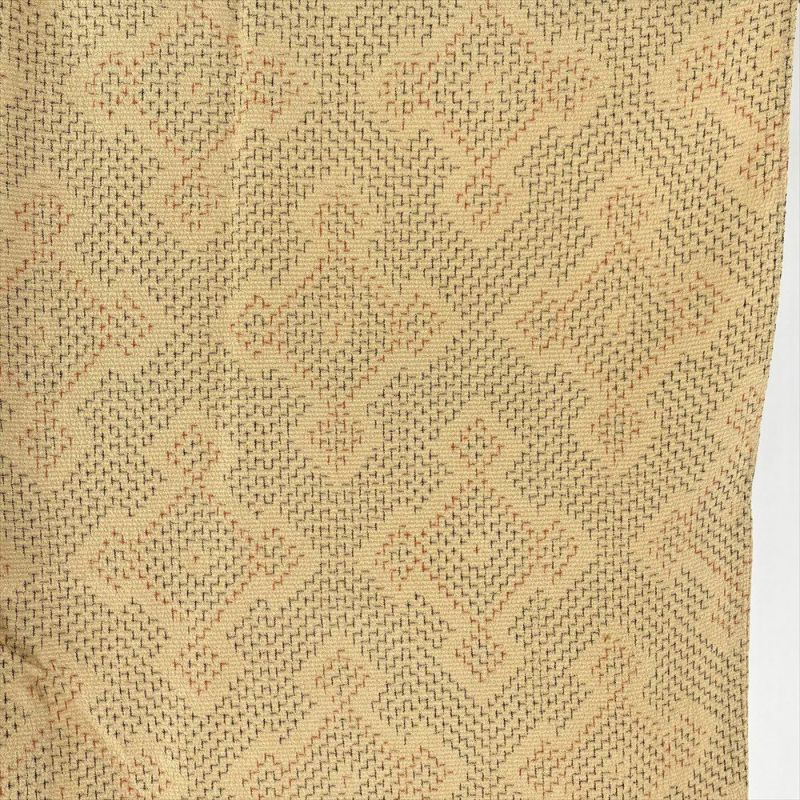 (中古) 単衣紬 黄色 薄芥子色 カジュアル 織り シボ 菱 ひとえ SS【身丈】140.5cm【裄丈】63.5cm