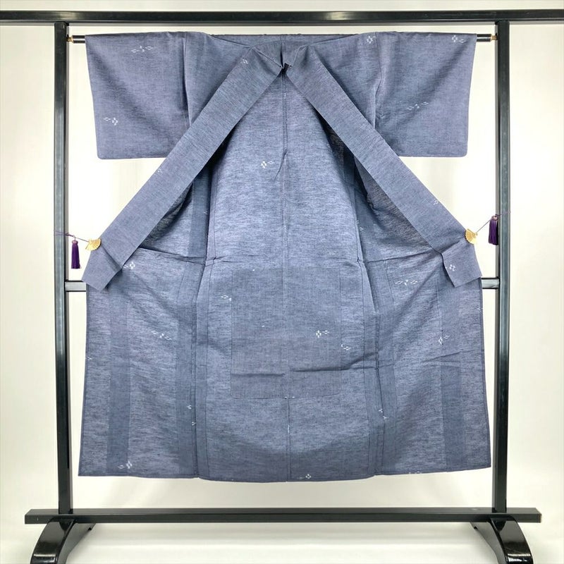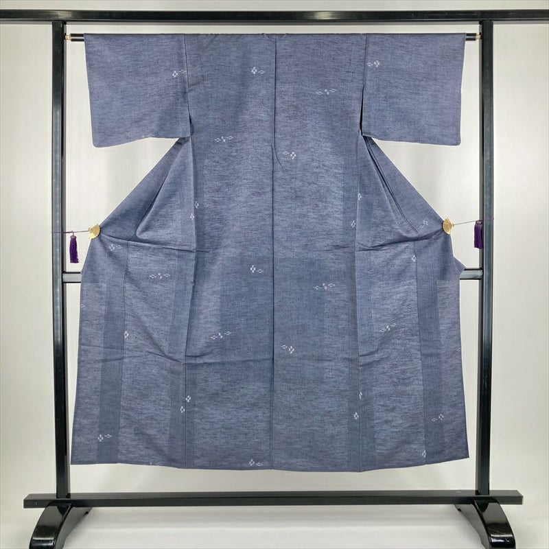 (中古) 単衣紬 薄青紫色 カジュアル 織り 絣柄 ひとえ SS【身丈】149cm【裄丈】62cm