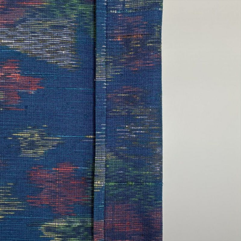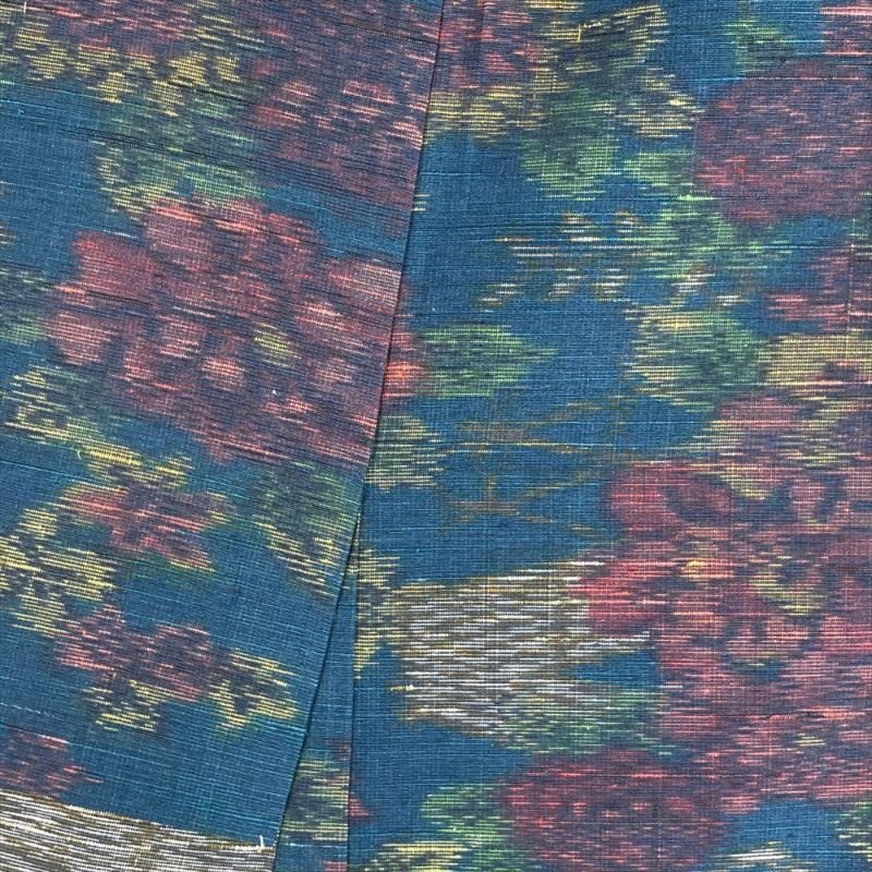 細かいフシのある生地感です、色落ちや劣化が少なく耐久性に優れています、普段着やおしゃれ着として使えるカジュアルなお着物です。保存臭がややございます。