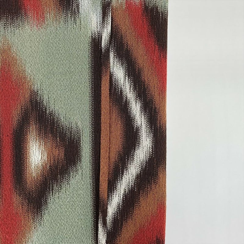 【色柄】柳茶色 緑 カジュアル 織り シボ 菱 イカット柄調