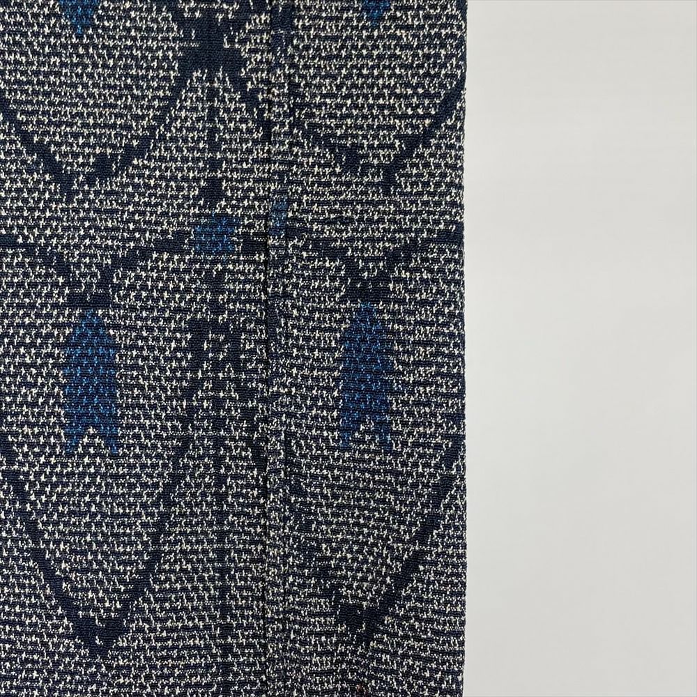 (中古) 単衣紬 紺 グレー カジュアル 幾何学柄 ひとえ SS【身丈】145.5cm【裄丈】63cm