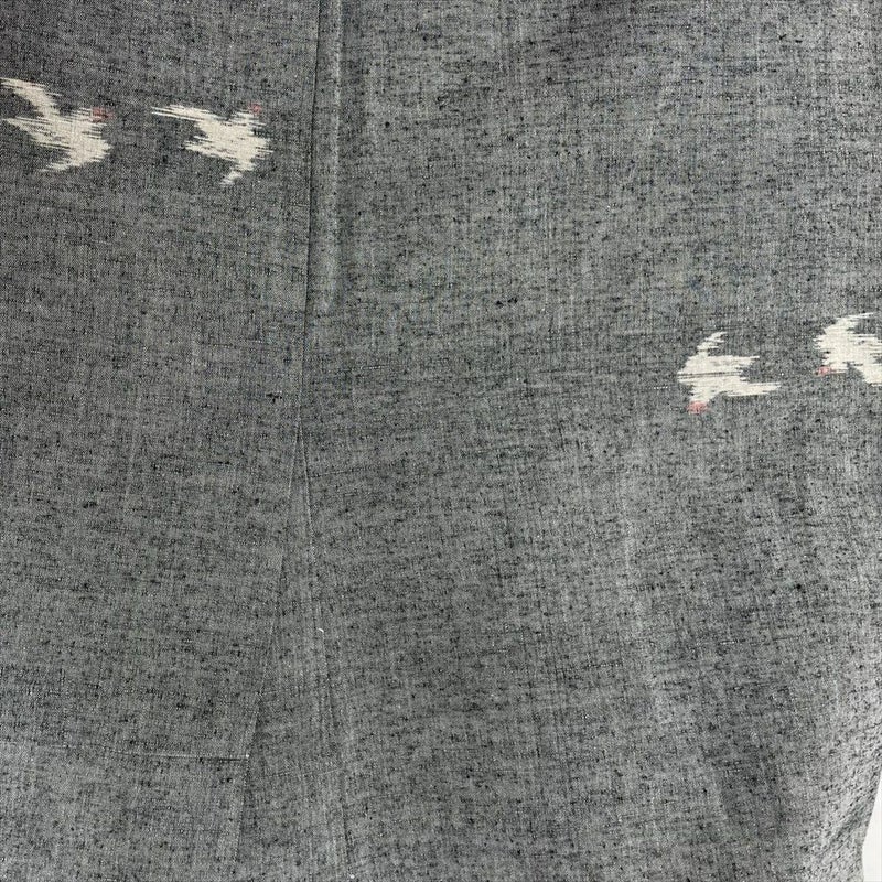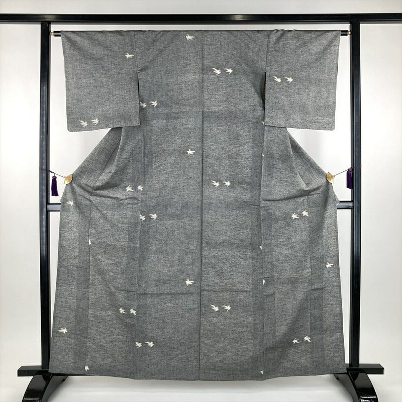 (中古) 単衣紬 グレー 灰色 カジュアル 織り 対の鳥 ひとえ S【身丈】157cm【裄丈】63.5cm