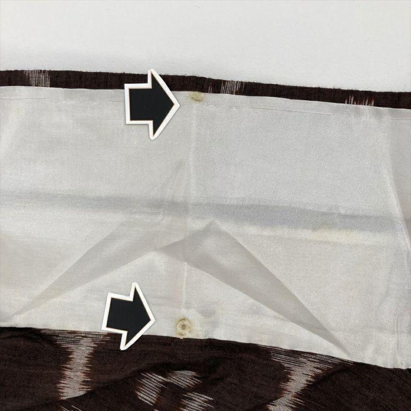 単衣の着物は裏地がついていません、袷の着物よりも軽く、風通しが良いのが特徴です。 袷ほど着る期間は長くないですが、春に急に気温が上がったときや、まだ暑さの残っている秋口に活躍します。現在は、温暖化のため単衣を長い期間(2ヶ月~5ヶ月未満)着用する人が増えてきました。スナップが片方ありません。保存臭がややございます。