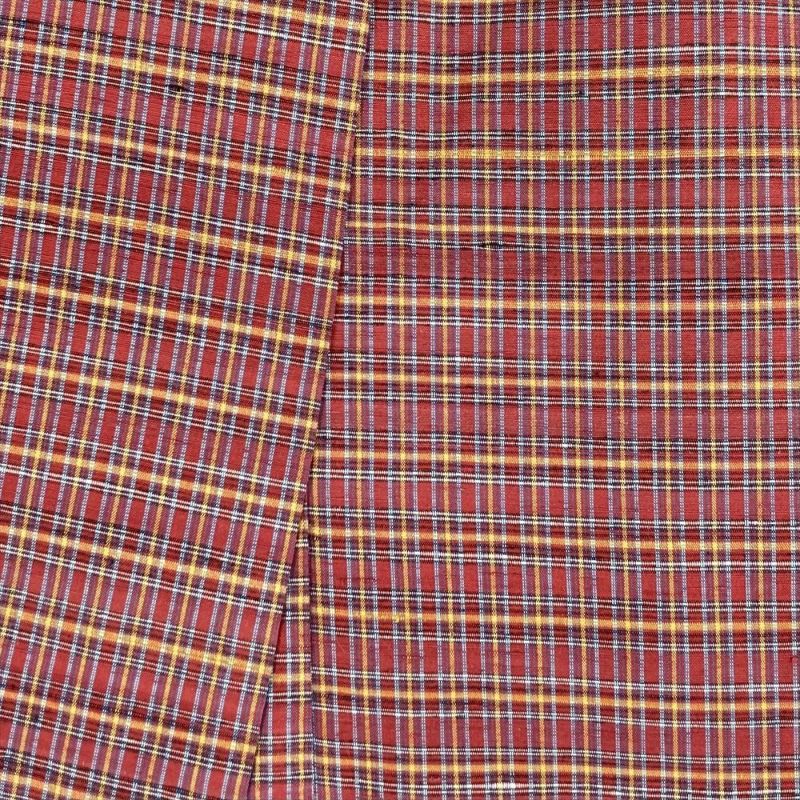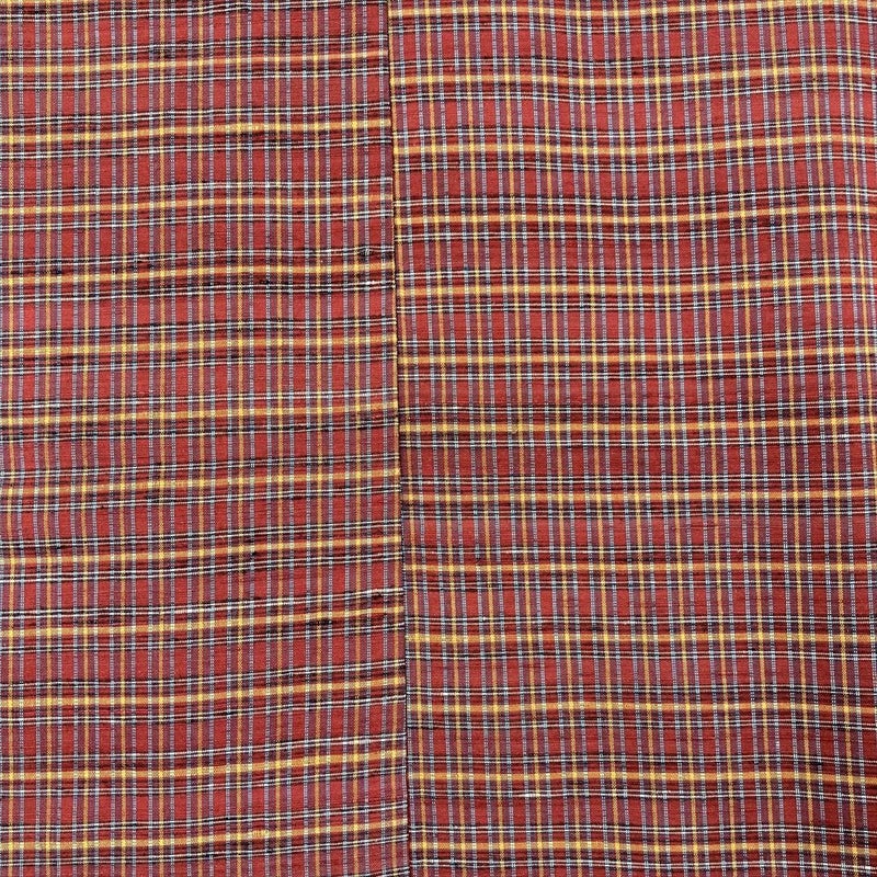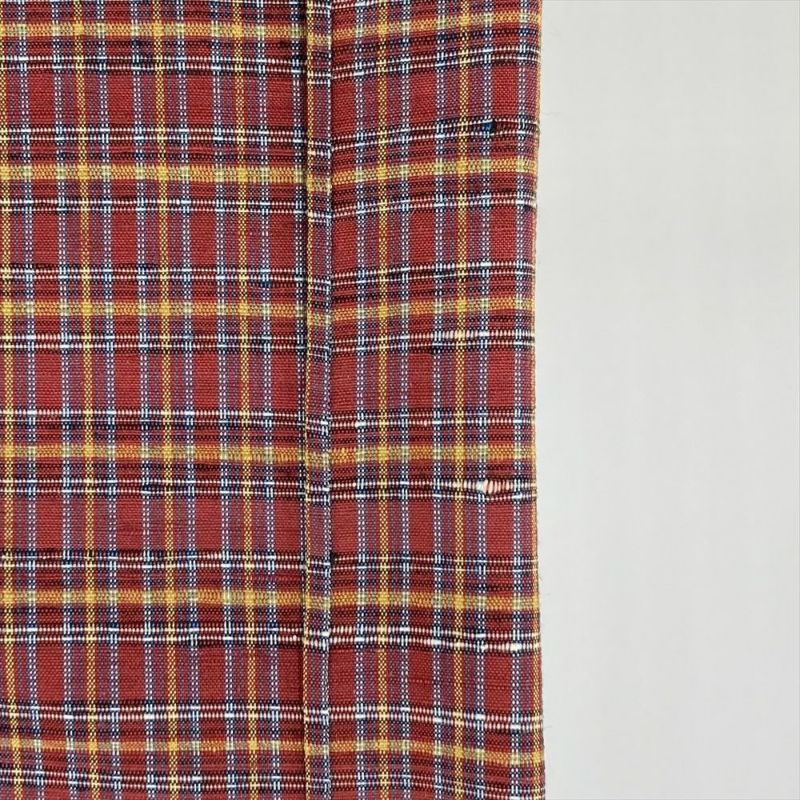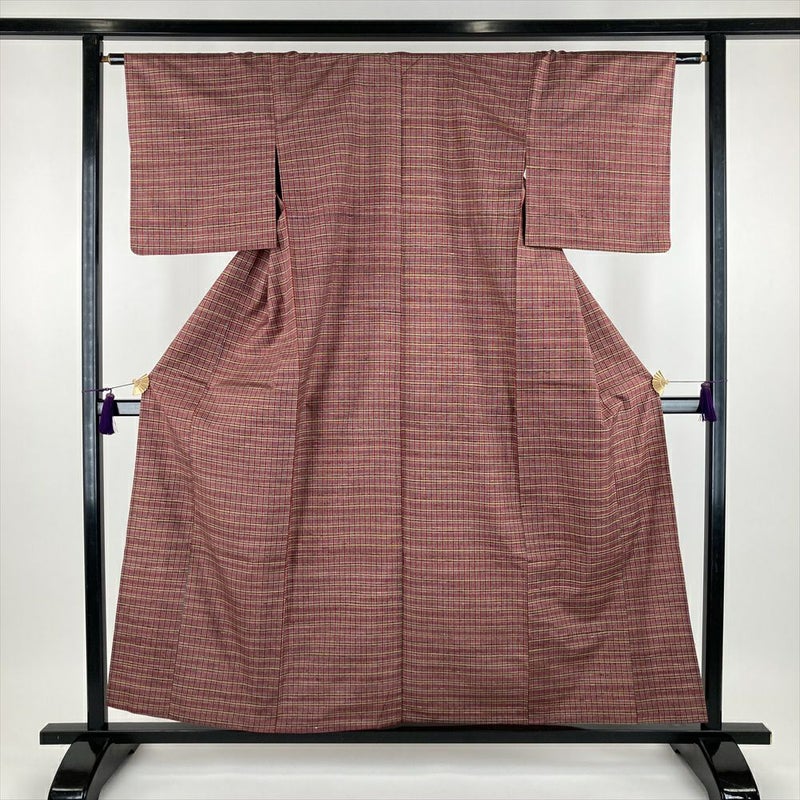 (中古) 単衣紬 赤色 カジュアル 織り 格子 ひとえ SS【身丈】152cm【裄丈】63cm