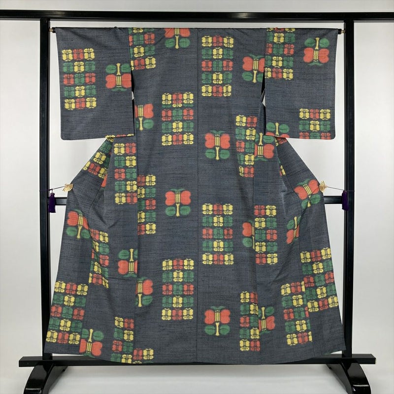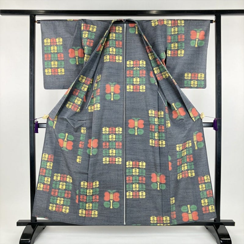単衣の着物は裏地がついていません、袷の着物よりも軽く、風通しが良いのが特徴です。 袷ほど着る期間は長くないですが、春に急に気温が上がったときや、まだ暑さの残っている秋口に活躍します。現在は、温暖化のため単衣を長い期間(2ヶ月~5ヶ月未満)着用する人が増えてきました。右後に汚れがございます。保存臭がややございます。