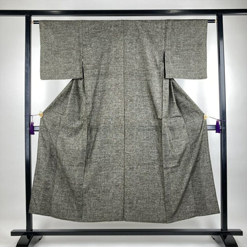 (中古)単衣紬 灰緑 グレー カジュアル 織り 幾何学 ひとえ SS【身丈】145.5cm【裄丈】61.5cm