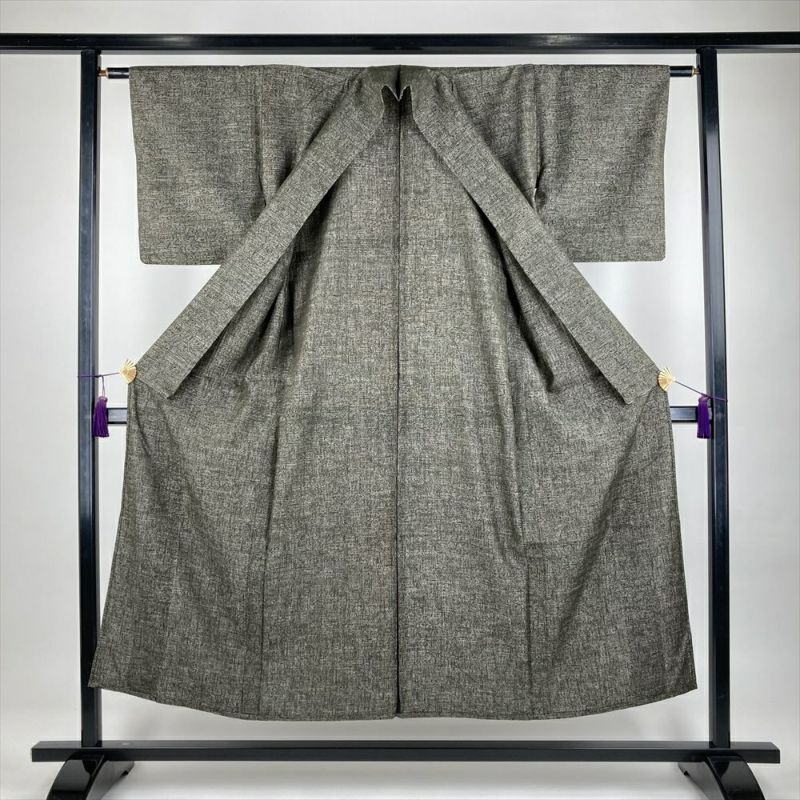 従来の決まりでいうと6月と9月、季節の変わり目に着る着物が単衣(ひとえ) 次にやってくる袷(あわせ)の前に軽やかに着られ、小物の合わせ方次第で季節を繊細に表現できます。透け感のある生地ではなく表布は袷と同じですが、裏地が付いておらず一枚で仕立ててあるのが特徴です。保存臭がややございます。