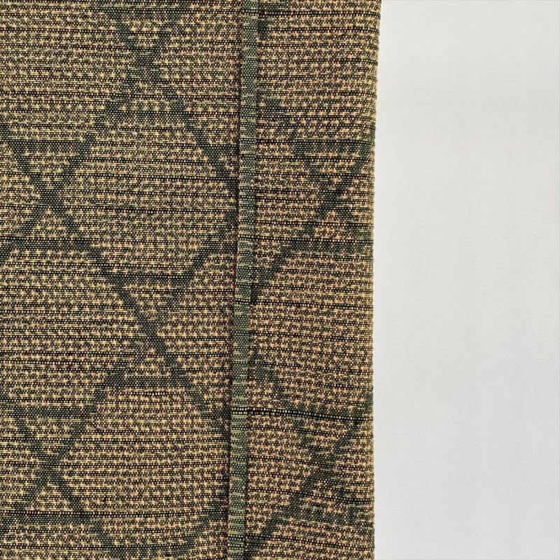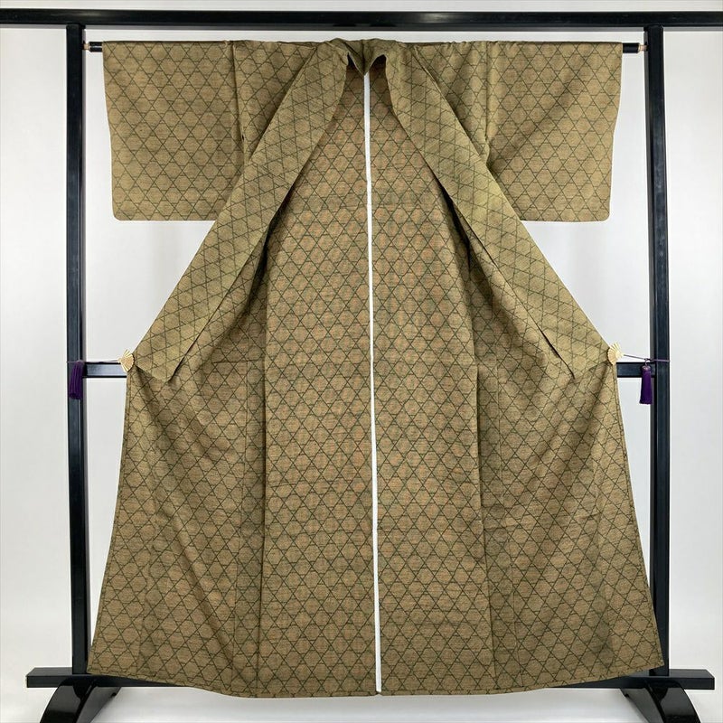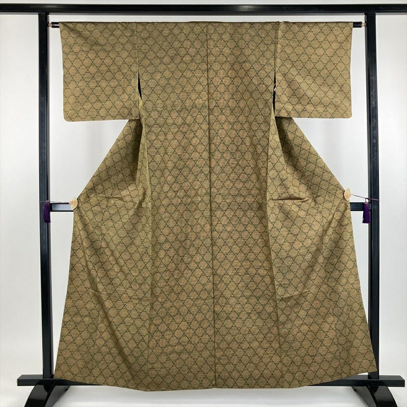 (中古) 紬 黄緑 芥子色 カジュアル 籠目 単衣【身丈】155cm【裄丈】62.5cm