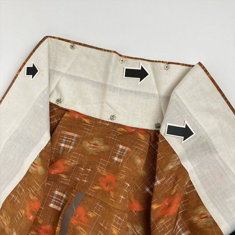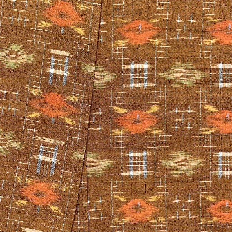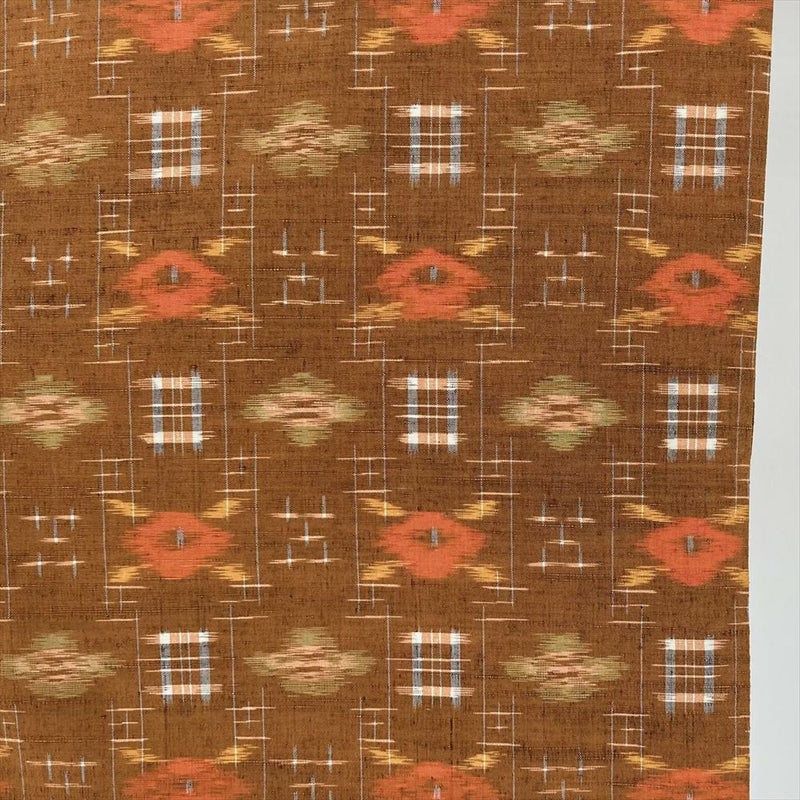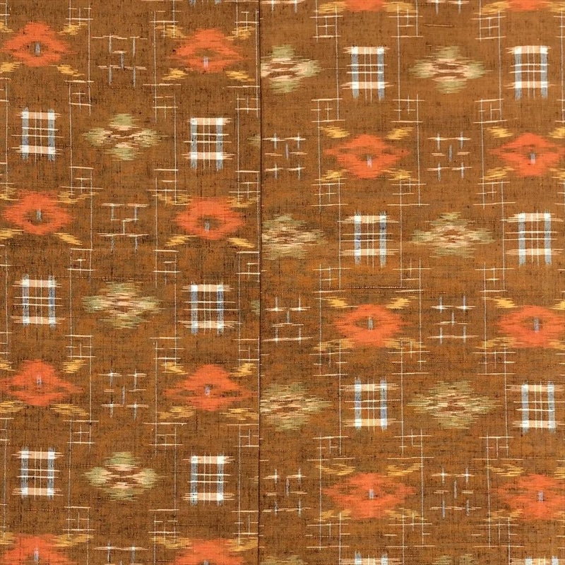 【色柄】オレンジ 黄茶色 カジュアル 織り 椿 絣柄