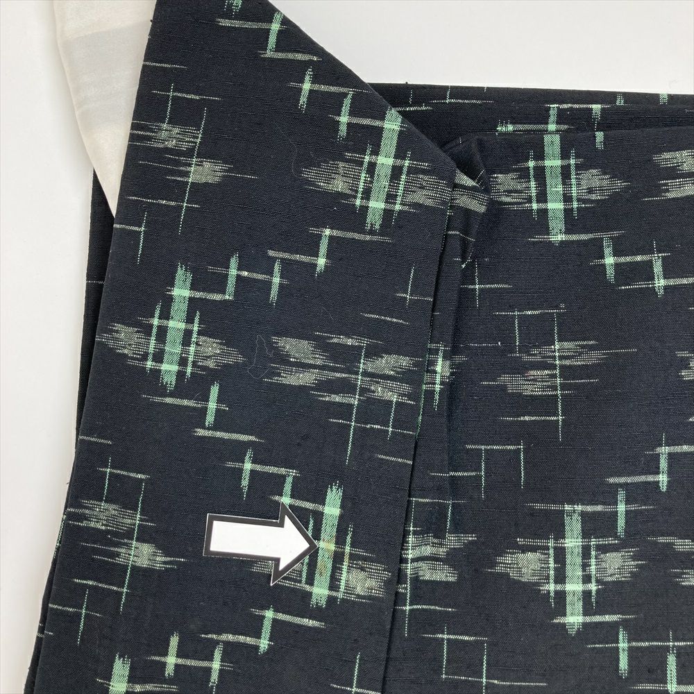 (中古) 単衣紬 黒色 カジュアル 織り 絣柄 ひとえ 【身丈】148cm【裄丈】63cm