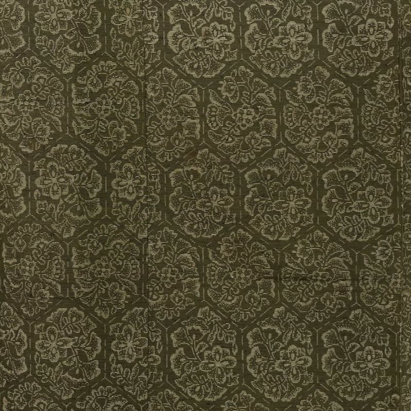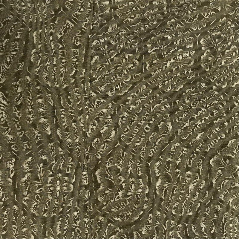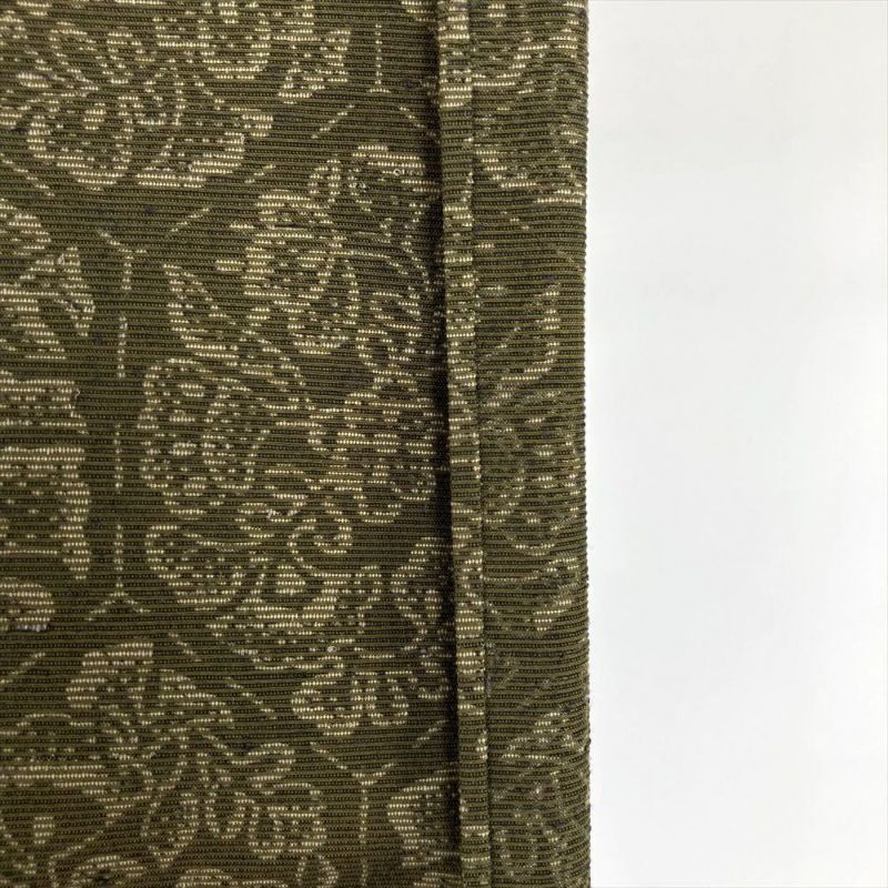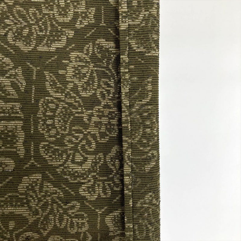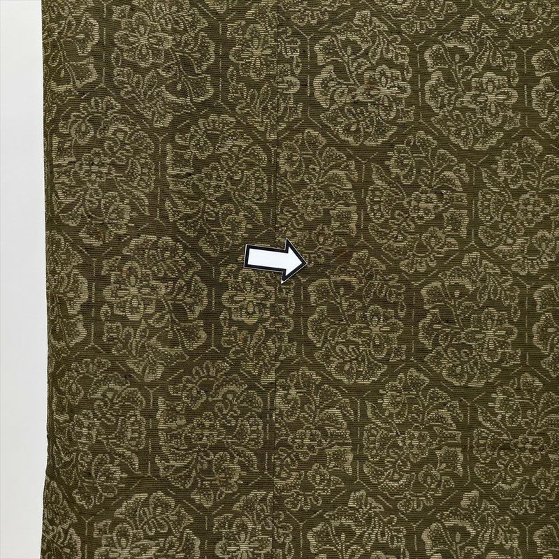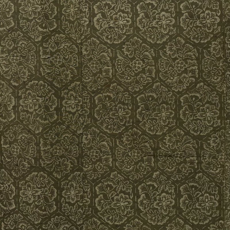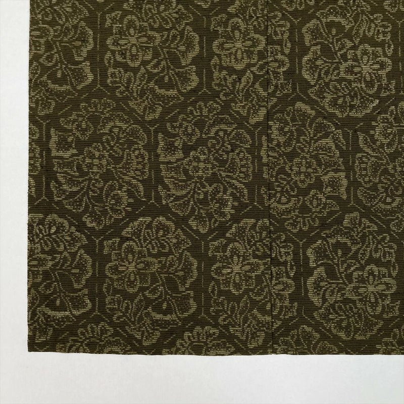 【色柄】柳茶色 緑 カジュアル 紬地 亀甲 オリエンタルな草花