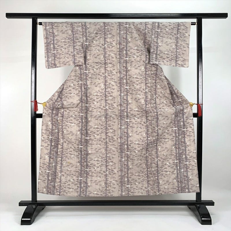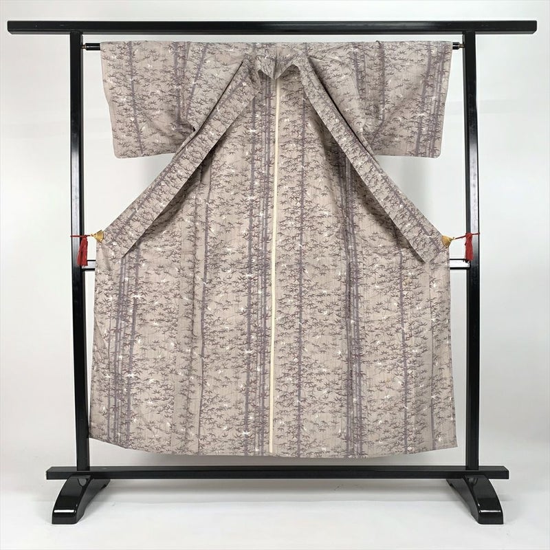 (中古)単衣紬 カジュアル グレー 笹 未洗い ひとえ SS【身丈】151cm【裄丈】63.5cm
