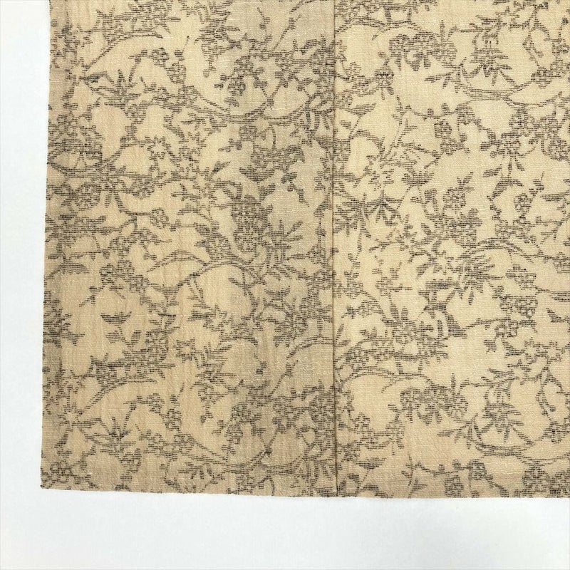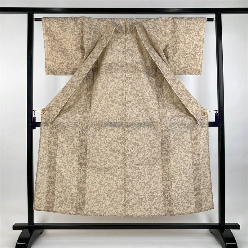 (中古) 単衣紬 薄茶 ベージュ カジュアル 織り 植物 ひとえ SS【身丈】147.5cm【裄丈】63cm