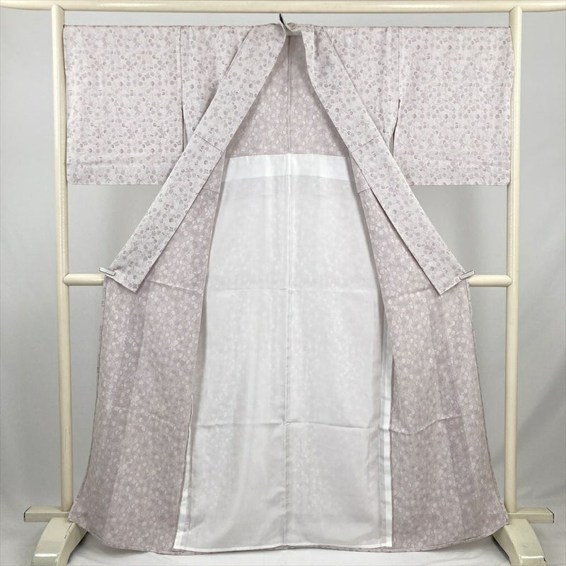(中古) 単衣紬 ピンク カジュアル 葵 桐 単衣 絹 【身丈】160cm【裄丈】70cm