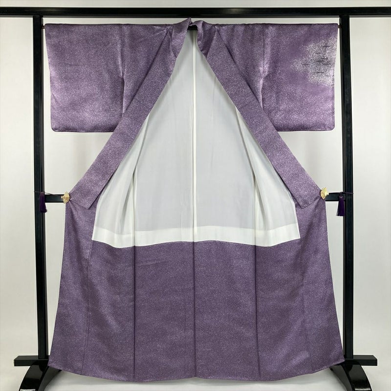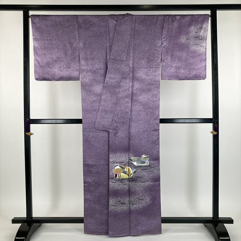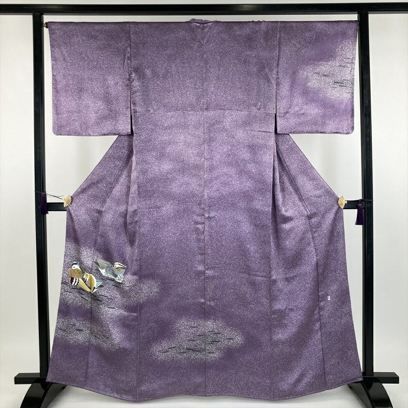 (中古) 羽田登喜氏 訪問着 紫色 フォーマル 地紋織り 染め 金銀彩 鴛鴦 袷【身丈】159.5cm【裄丈】67.5cm