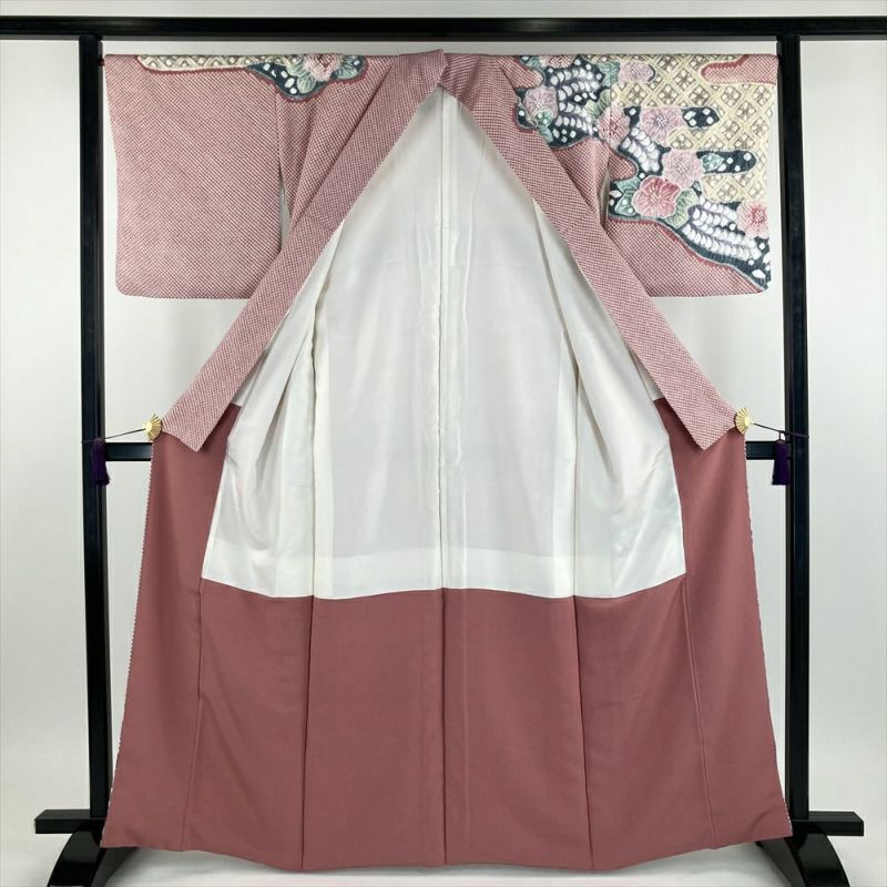 (中古)きぬたや 訪問着 ピンク 紅梅色 フォーマル 総絞り 花 霞に花菱 袷 【身丈】160cm【裄丈】67.5cm