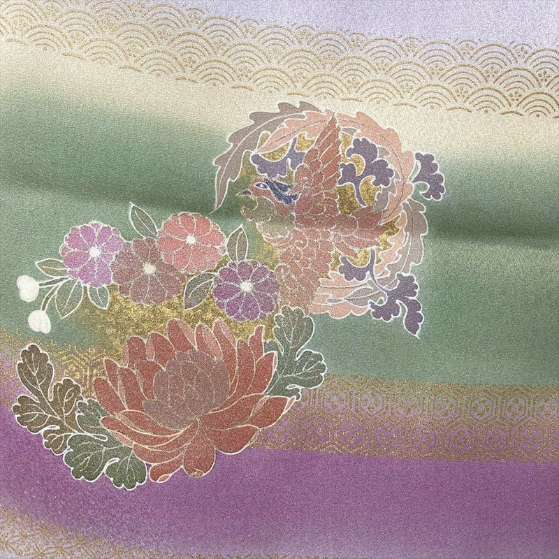 訪問着は、肩から裾にかけて柄がつながっている絵羽模様が特徴ですが、その柄は非常に自由度が高いです。花柄、風景画、抽象画など、様々なデザインがあり、年齢や個性を問わず、好みに合わせて選ぶことができます。