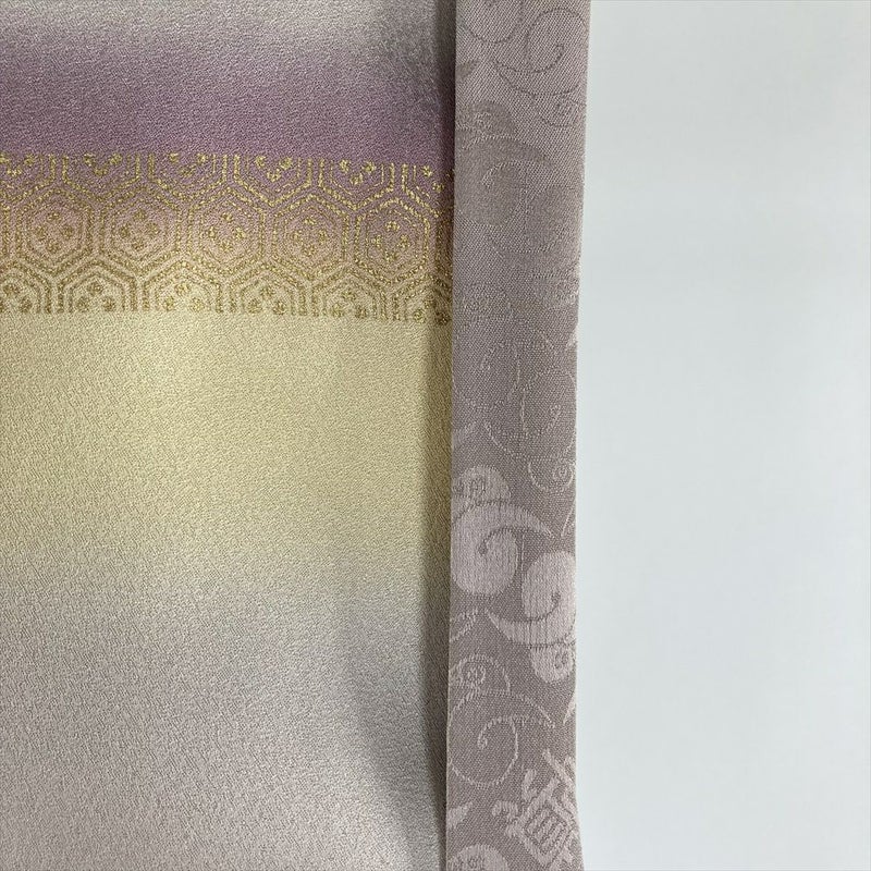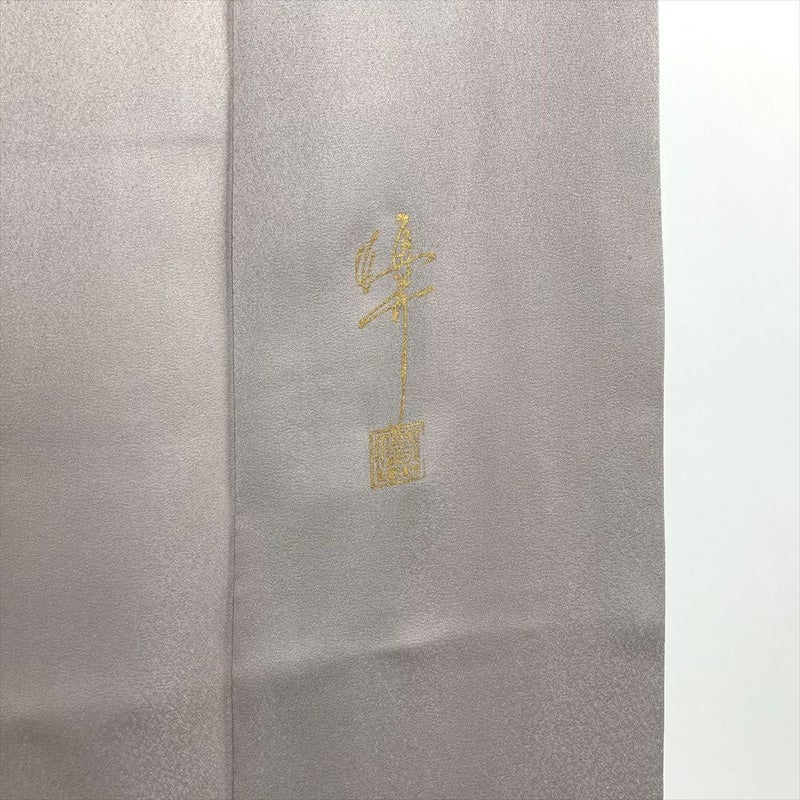 【色柄】茶鼠色 グレージュ色 セミフォーマル 地紋織り 染め 金彩 鳳凰 四季花 宝尽くし