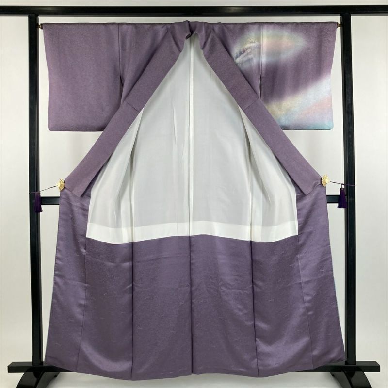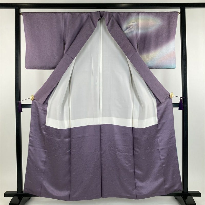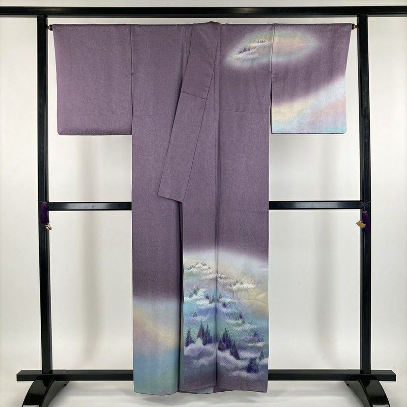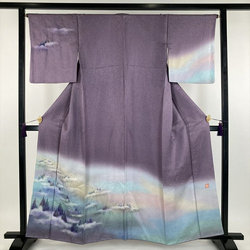 (中古) 久保田一竹 訪問着 紫色 水色 フォーマル 金通し 染め 霞に木立 二代目久保田一竹 袷 【身丈】155cm【裄丈】66cm