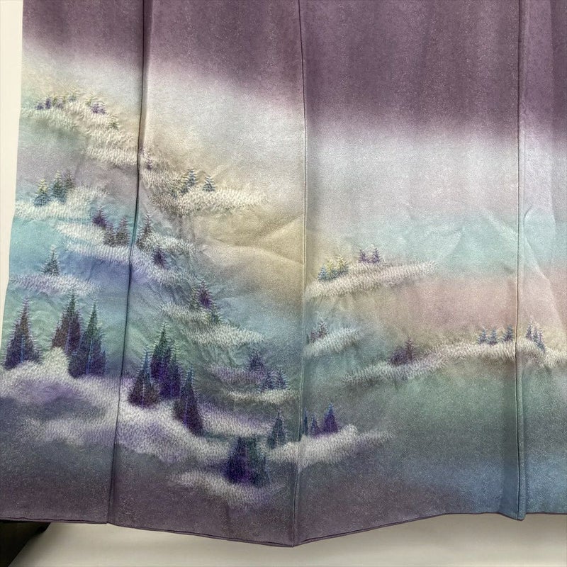 【色柄】紫色 水色 フォーマル 金通し 染め 霞に木立