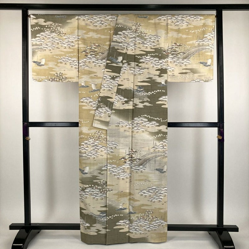 (中古) しょうざん 訪問着 薄黄色/灰緑色 セミフォーマル染め 江戸解き 袷【身丈】158cm【裄丈】67.5cm