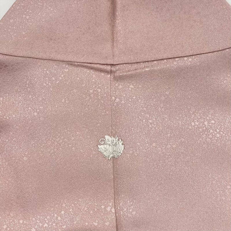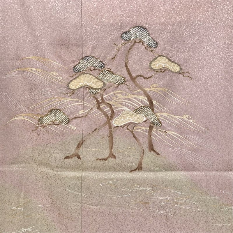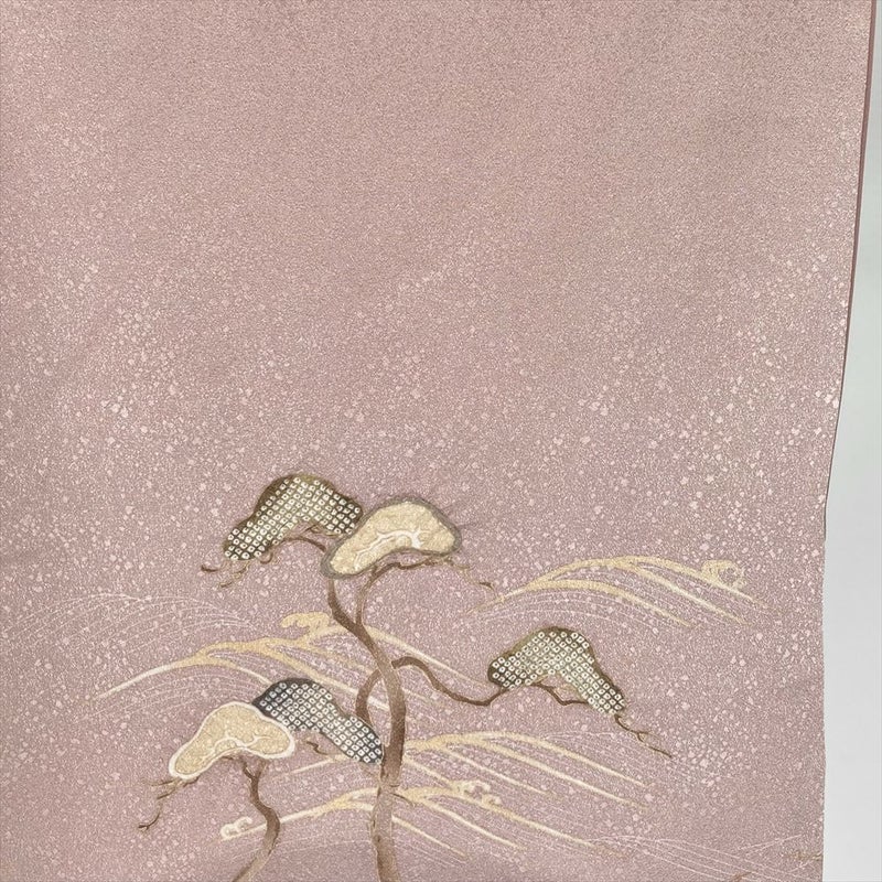 【色柄】灰ピンク セミフォーマル 地紋織り 染め 絞り 金彩 一つ紋 白砂清松