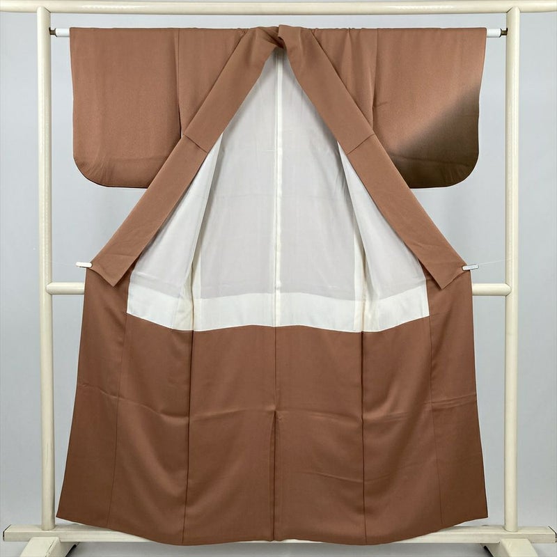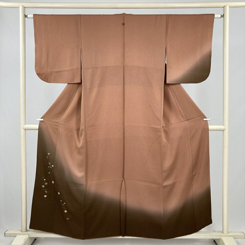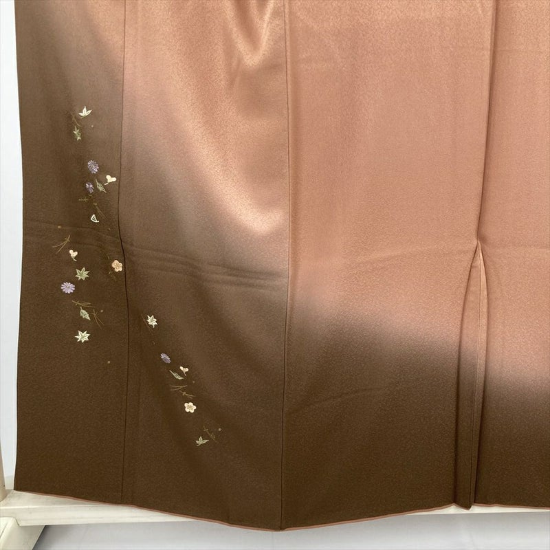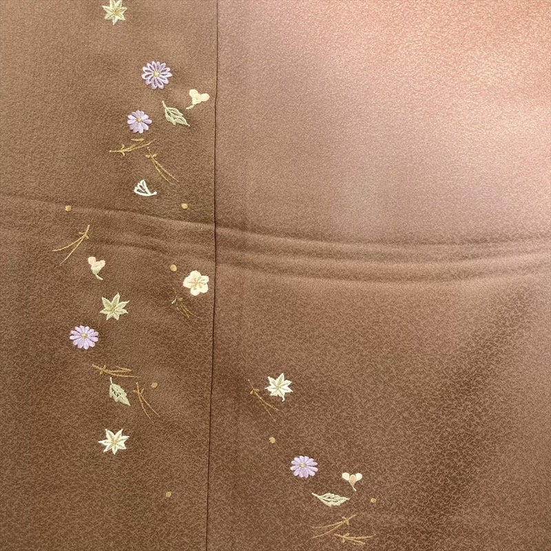 茶系の穏やかな地色に、裾ぼかしがやわらかな陰影を添える刺繍訪問着です。