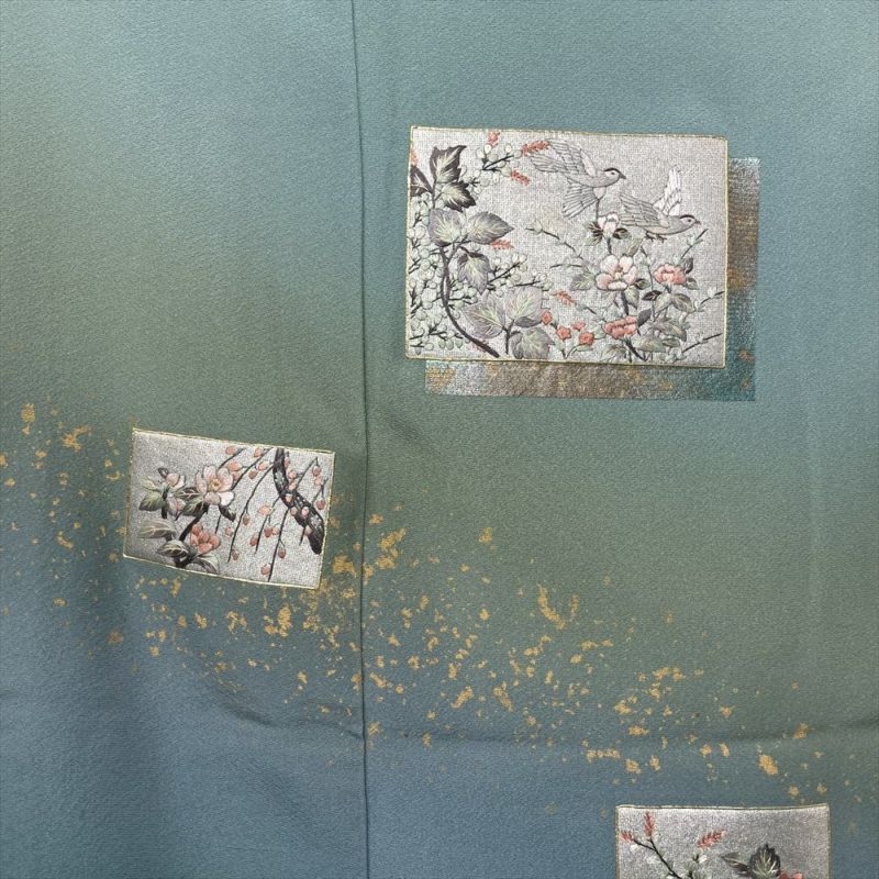 【色柄】青磁色 フォーマル セミフォーマル ちりめん ぼかし染め 金彩 銀彩 刺繍 色紙