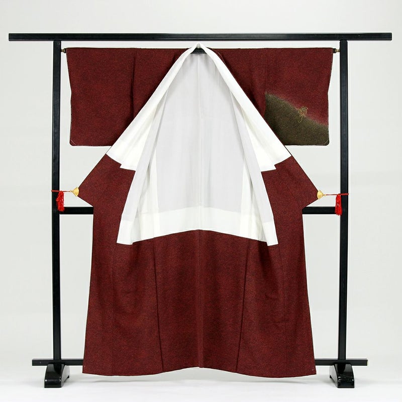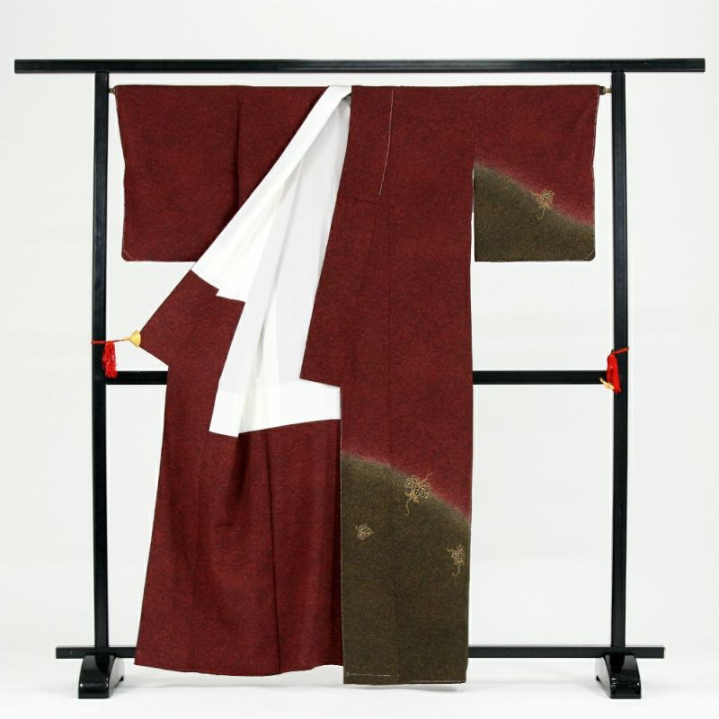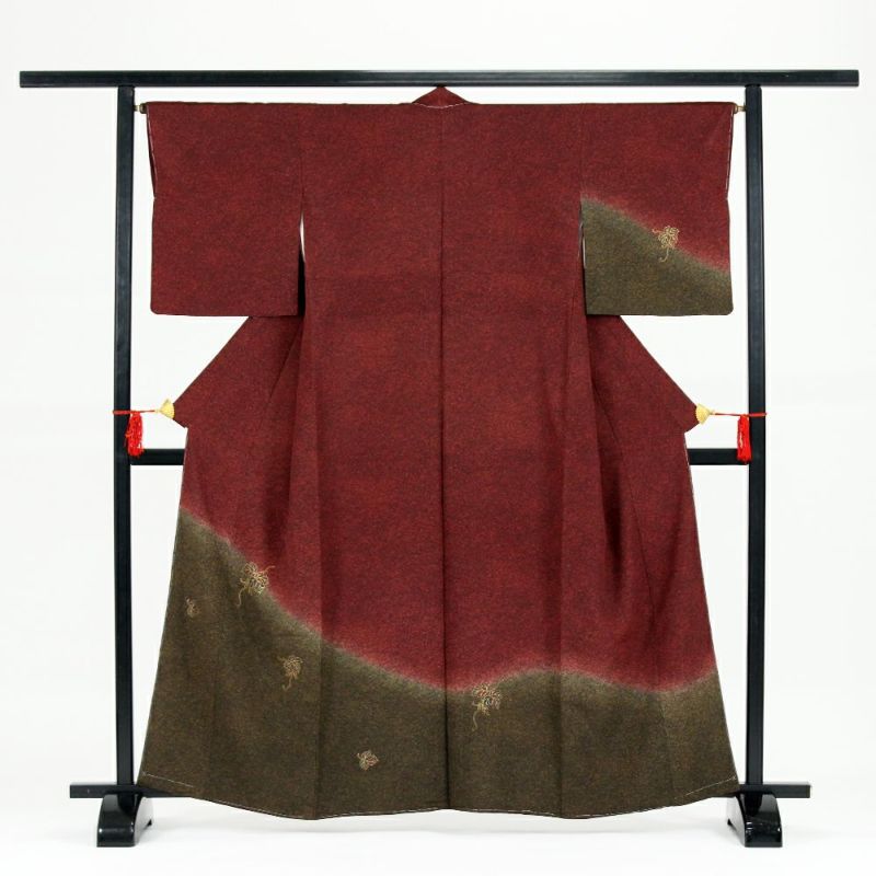 (中古)訪問着 臙脂色地 葡萄 お呼ばれ 袷 S【身丈】156.5cm【裄丈】65.5cm