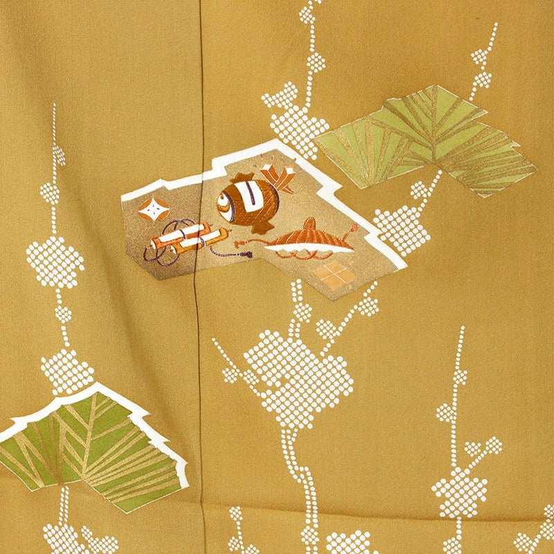 【色柄】からし色地 松竹梅 宝尽くし 上品 金彩