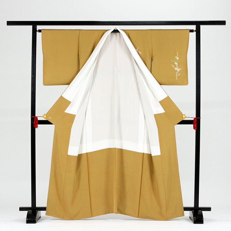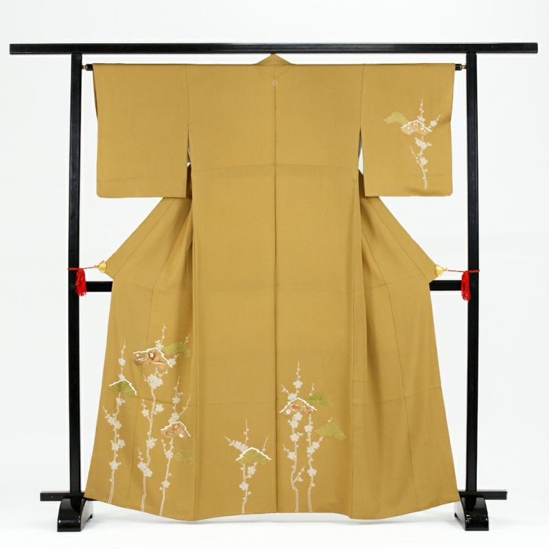 (中古)付下 からし色地 松竹梅 宝尽くし 上品 金彩 フォーマル 袷 S【身丈】158.5cm【裄丈】63.5cm