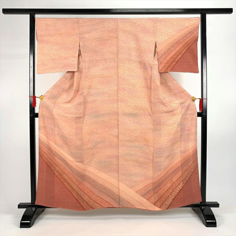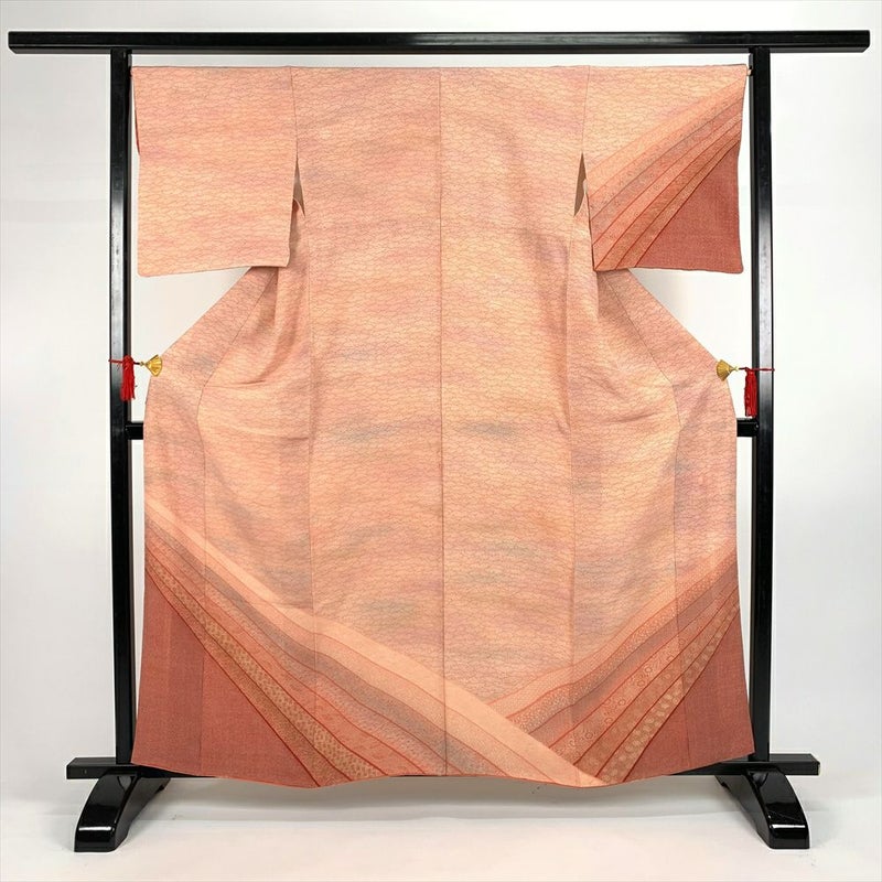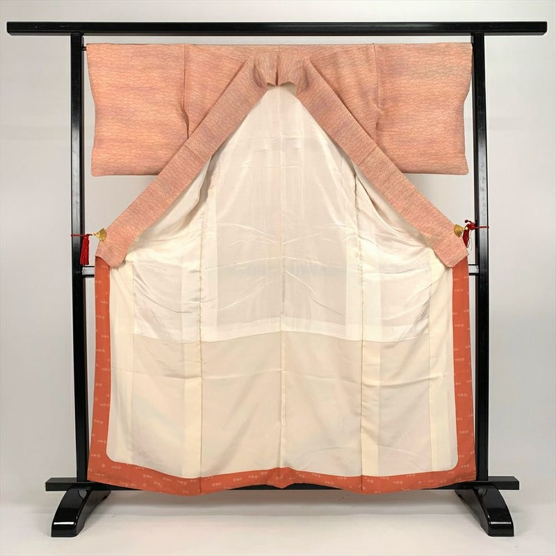 (中古)訪問着 サーモピンク フォーマル 江戸小紋 斜め取り 袷 S【身丈】158.5cm【裄丈】68.5cm