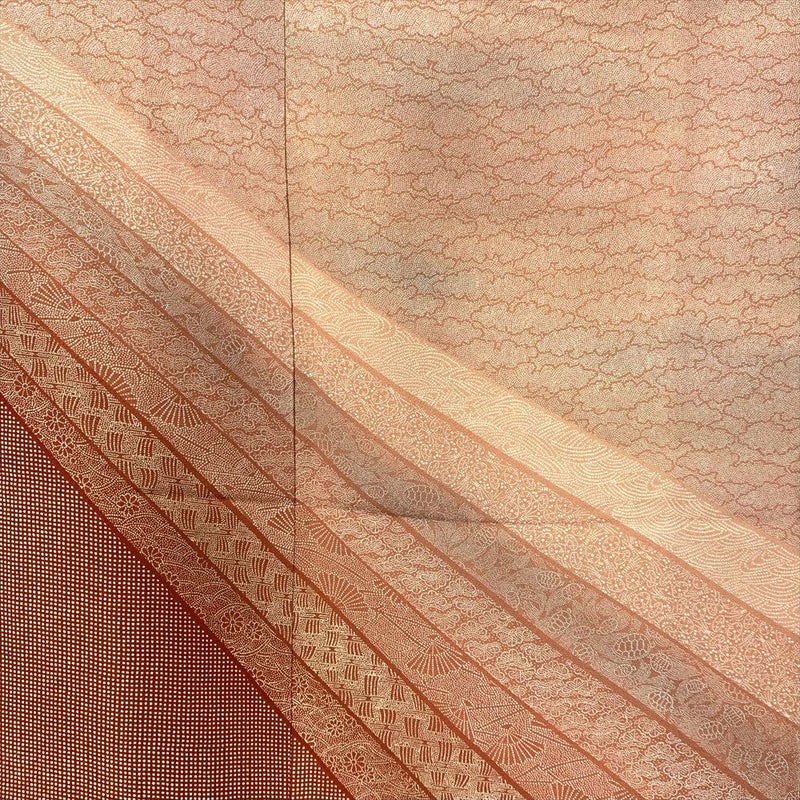 サーモンピンクは、日本人の肌によく馴染み、優しく、華やかな印象を与える色です。この訪問着のサーモンピンクは、上品な光沢を放ち、着る人の表情を明るく、美しく見せてくれます。