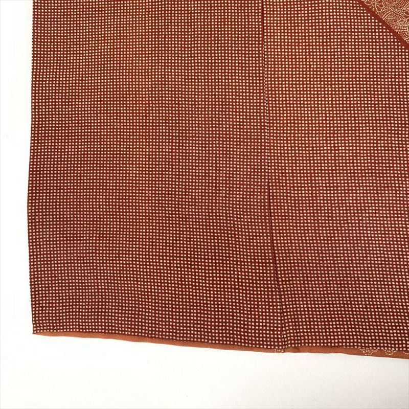 江戸小紋は、武士の裃(かみしも)に用いられたのが始まりとされる、歴史ある染めの技法です。その特徴は、遠目には無地に見えるほど細かく、緻密な文様。この訪問着には、熟練の職人技が光る、繊細な江戸小紋柄が染められています。