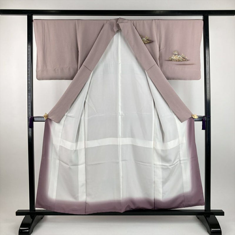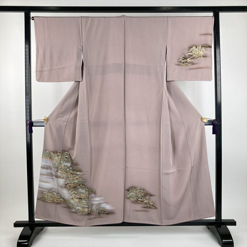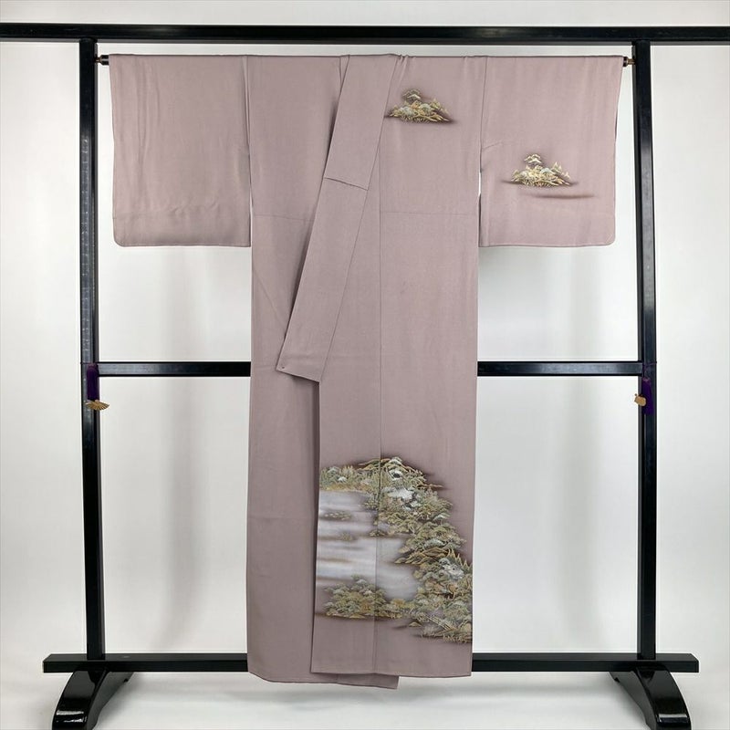 (中古)訪問着 紫 フォーマル 金銀彩 松 風景画 袷 SS【身丈】153.5cm【裄丈】68.5cm