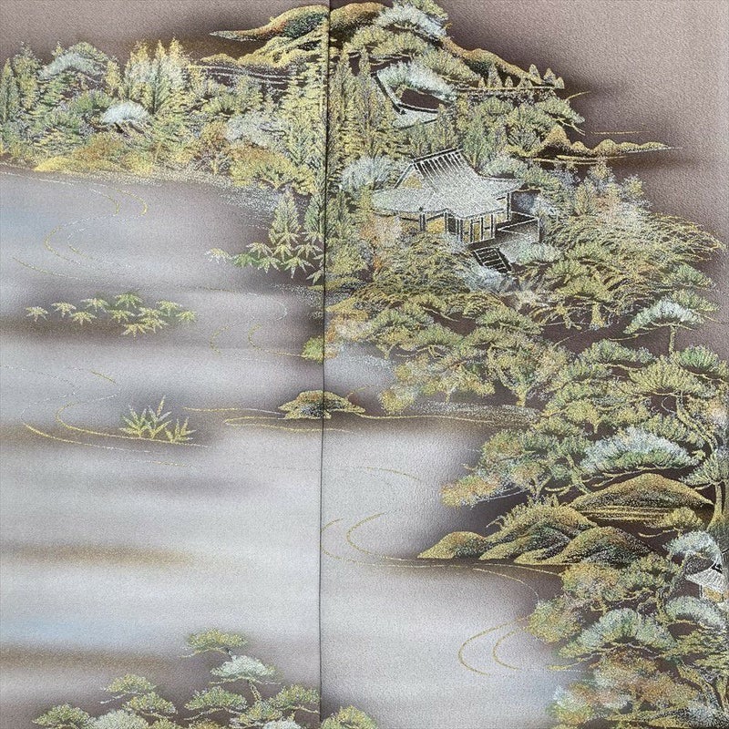 【色柄】紫 フォーマル 金銀彩 松 風景画