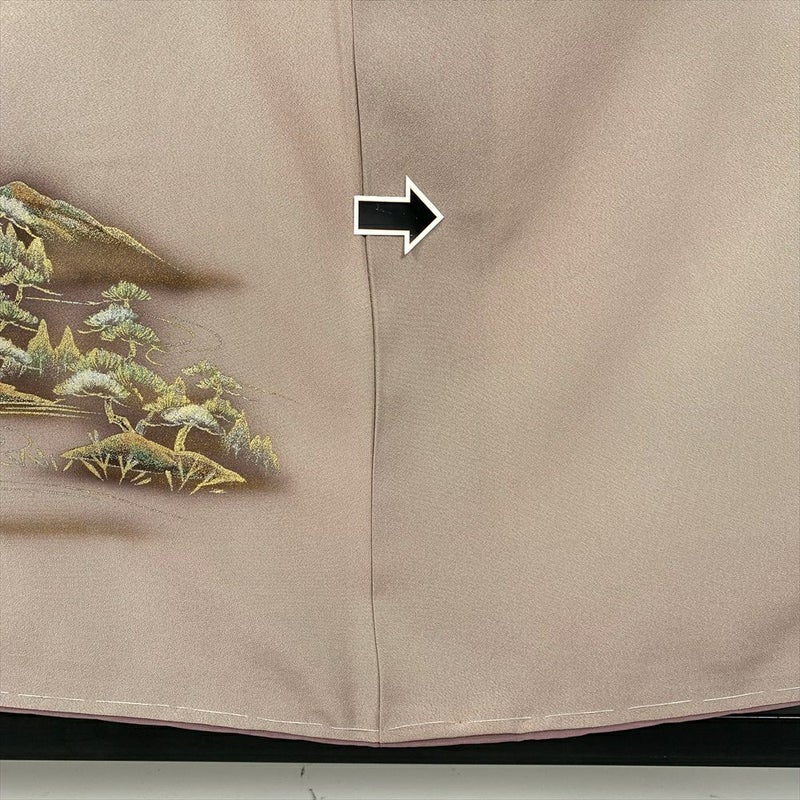 帯次第で、式典やお茶会、披露宴などにお使いいただけるお着物になります。下前の肩付近に擦れと、裾あたりに薄い茶色い汚れが見られますが、着用には問題のない程度と考えられます。しつけ糸あり。