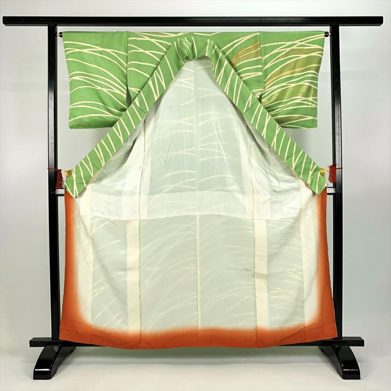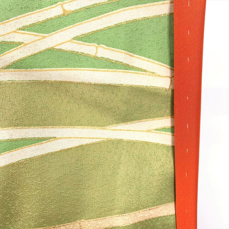 (中古)訪問着 緑 フォーマル 金彩 金駒刺繍 竹 刺繍 袷【身丈】159.5cm【裄丈】65.5cm