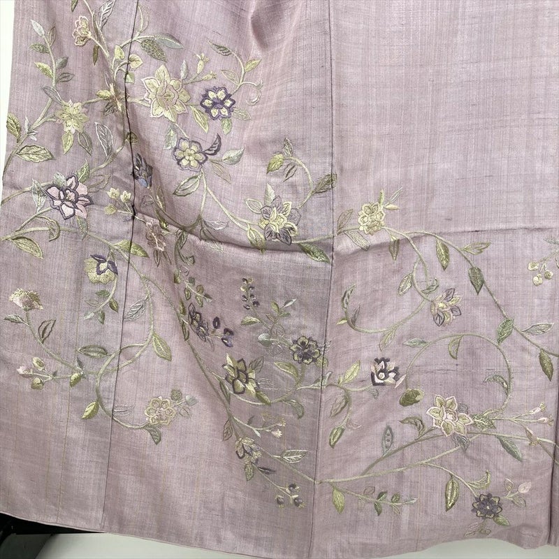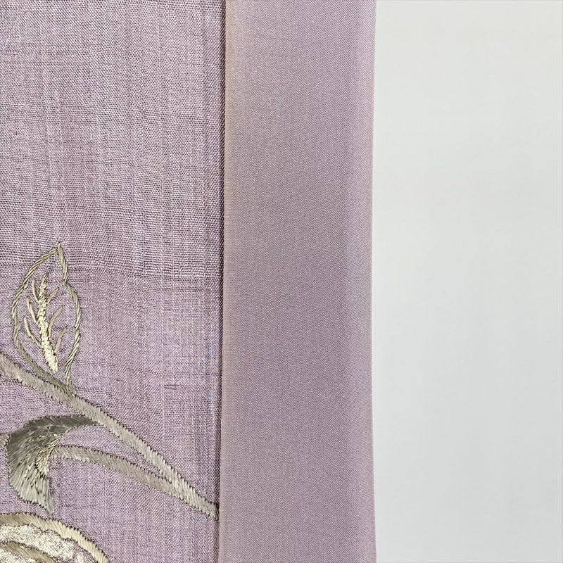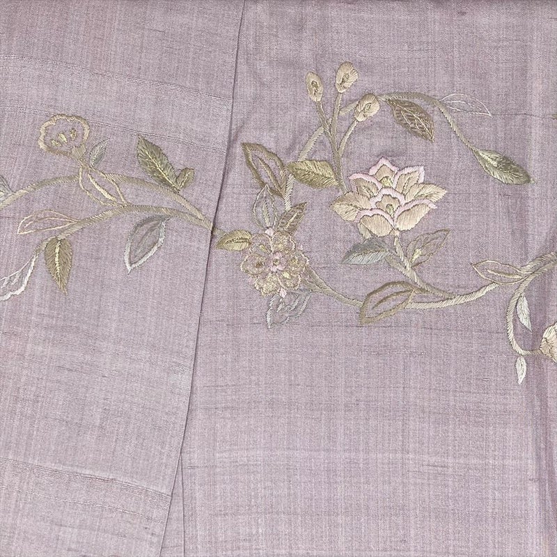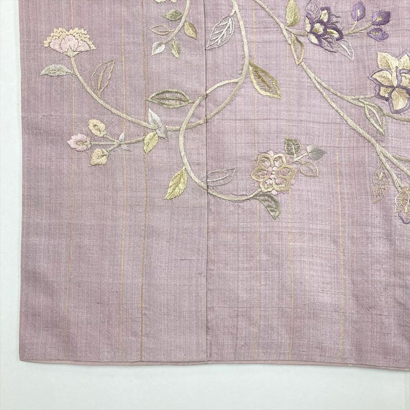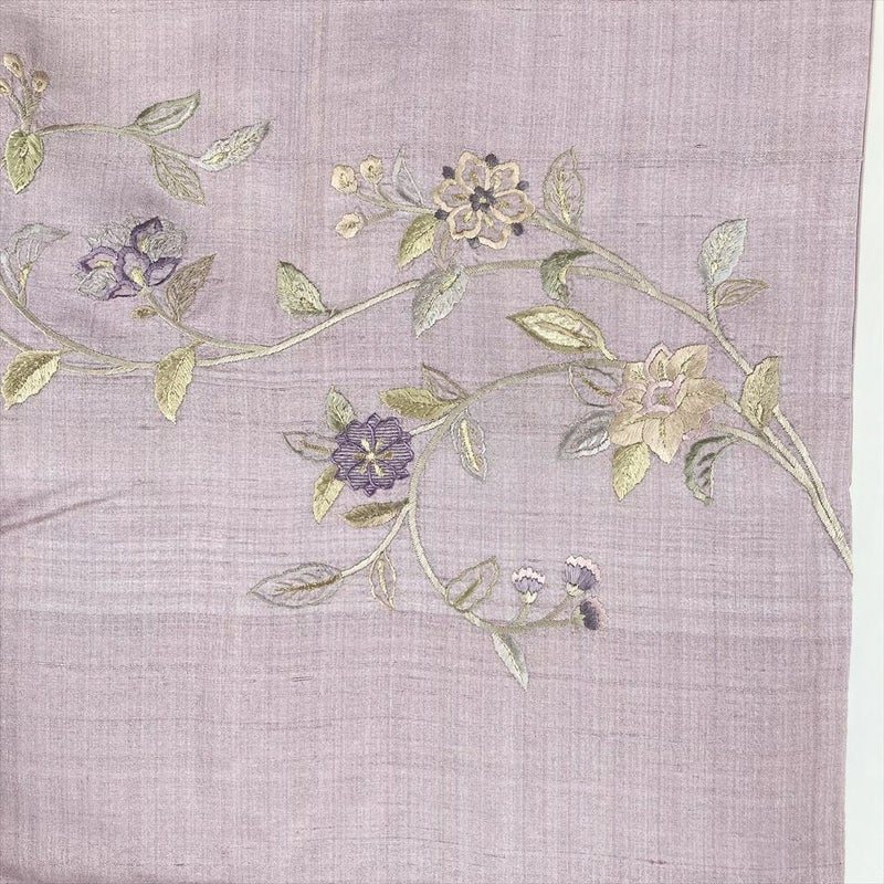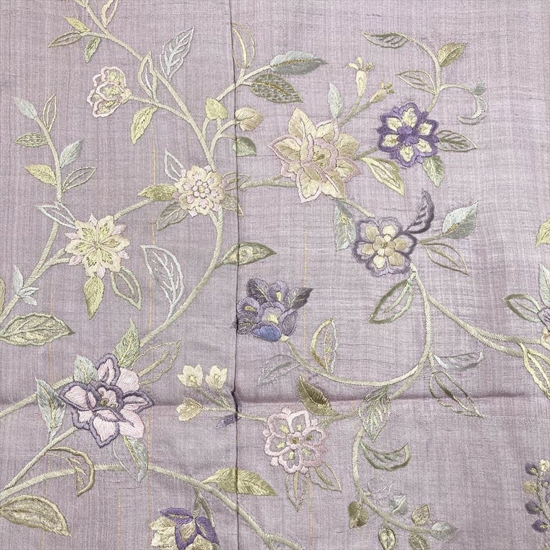 【色柄】薄紫 紬地 蘇州刺繍 金糸 草花